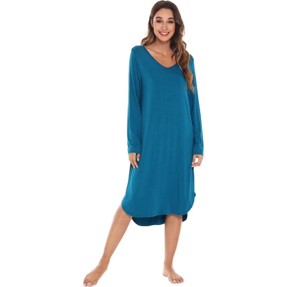 WiWi Viscose from Bamboo Nightgowns for Women Soft Long Sleeve Sleep Shirt S-4X(A-peacock Blue)