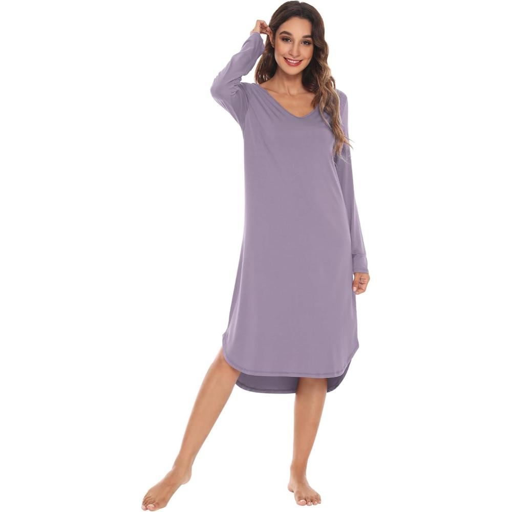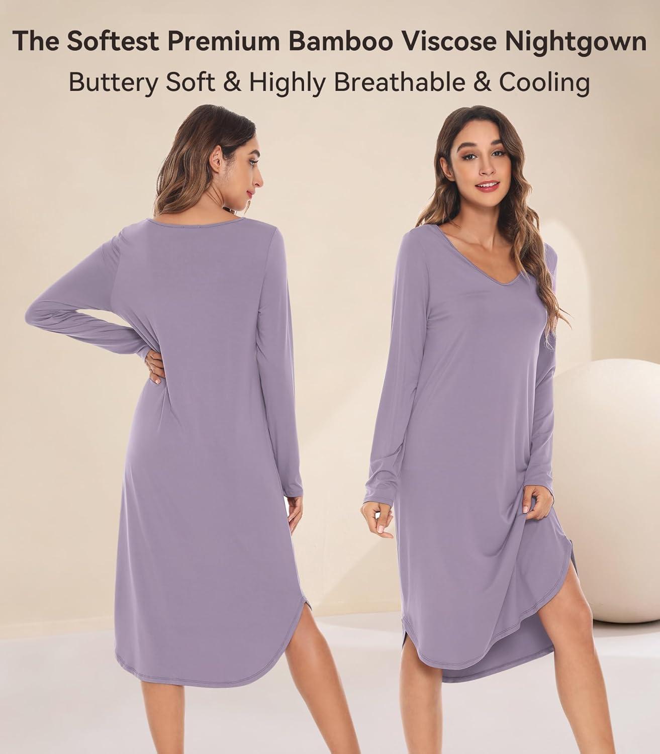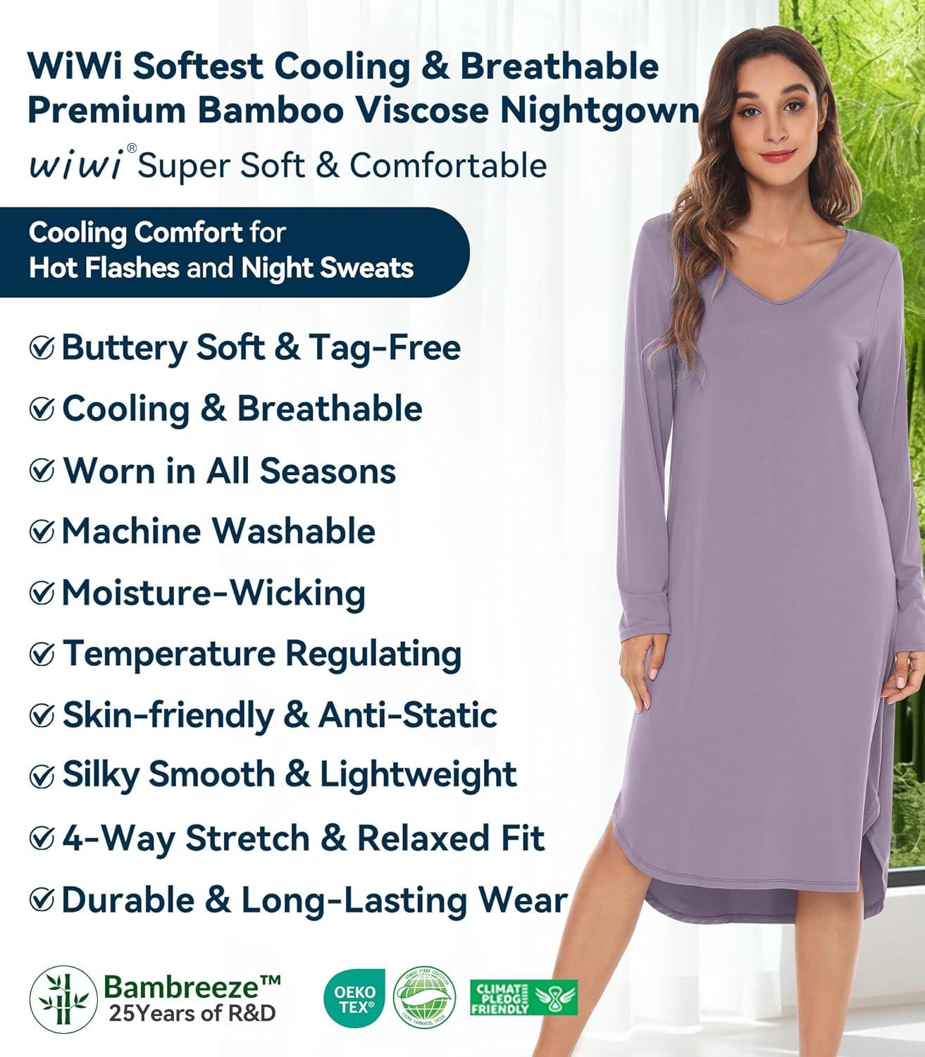 WiWi Viscose from Bamboo Nightgowns for Women Soft Long Sleeve Sleep Shirt S-4X(A-violet)