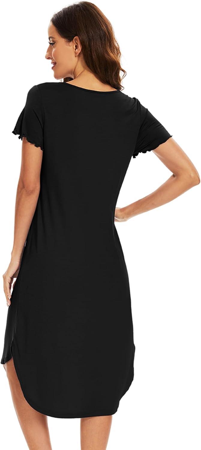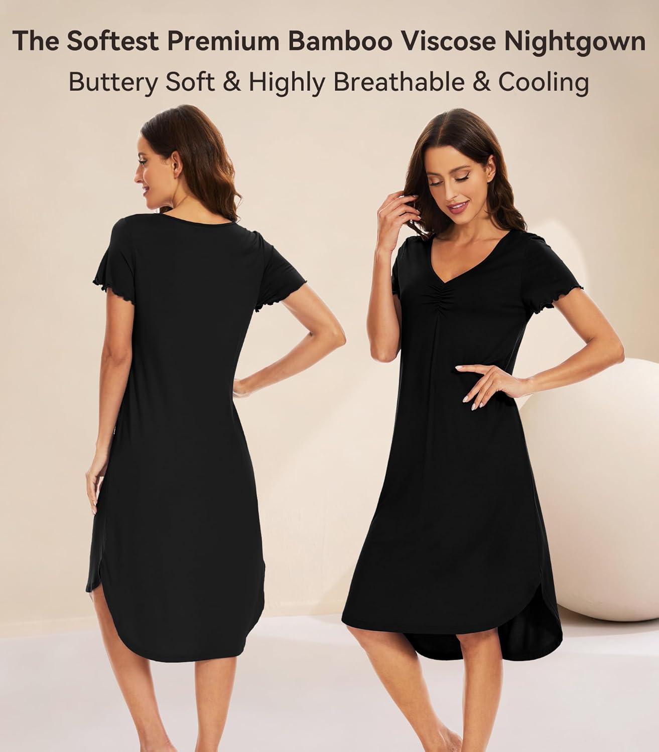 WiWi Viscose from Bamboo Nightgowns for Women Soft Long Sleeve Sleep Shirt S-4X(B-black)