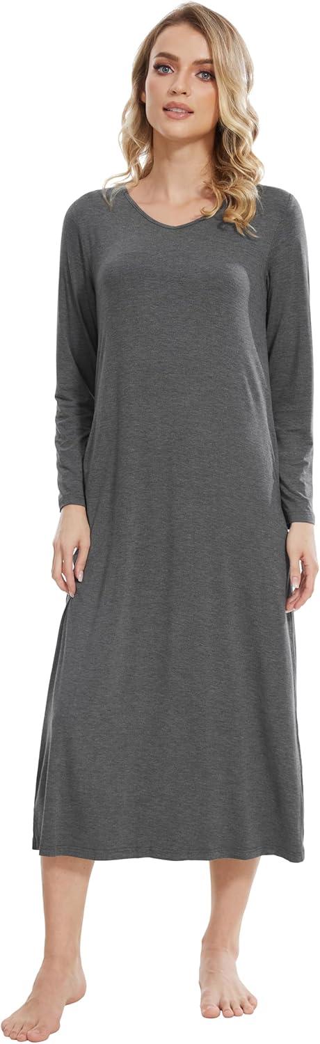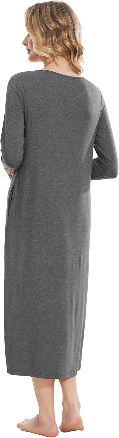 WiWi Viscose from Bamboo Nightgowns for Women Soft Long Sleeve Sleep Shirt S-4X(D-dark Heather Grey)