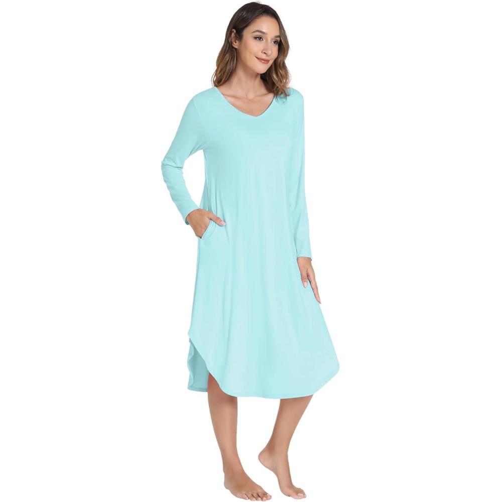 WiWi Viscose from Bamboo Nightgowns for Women Soft Long Sleeve Sleep Shirt S-4X(E-aqua)
