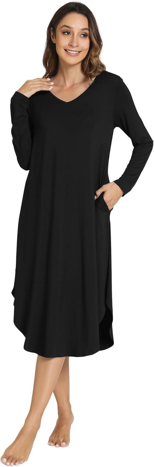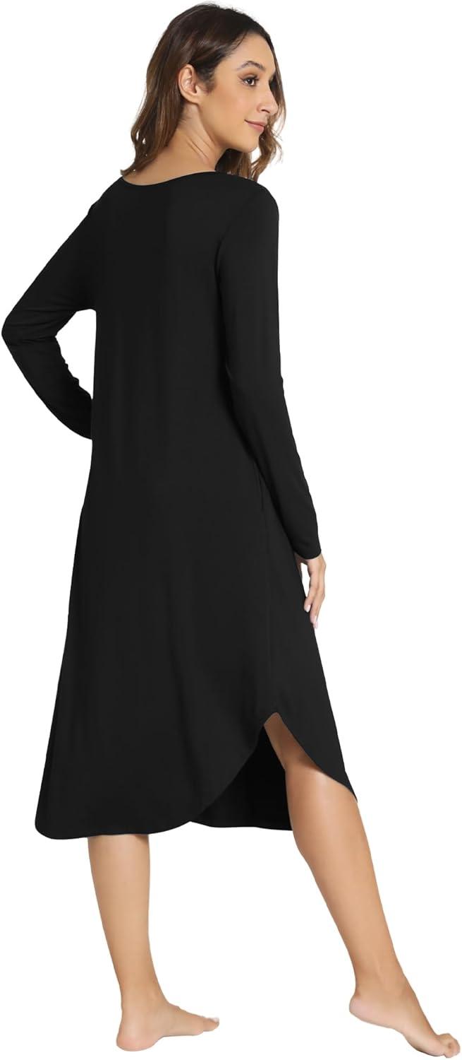 WiWi Viscose from Bamboo Nightgowns for Women Soft Long Sleeve Sleep Shirt S-4X(E-black)