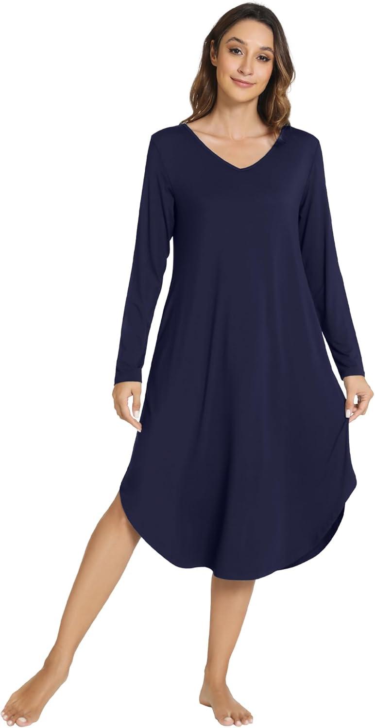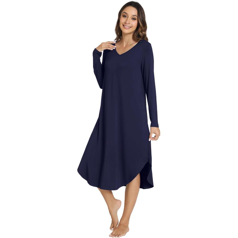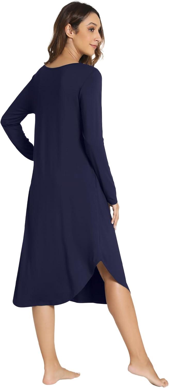 WiWi Viscose from Bamboo Nightgowns for Women Soft Long Sleeve Sleep Shirt S-4X(E-navy)