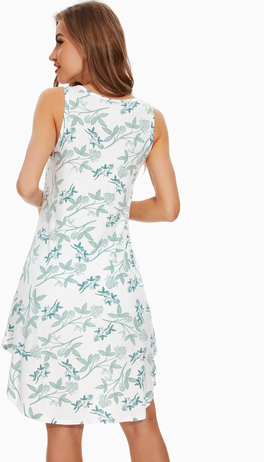 WiWi Viscose from Bamboo Nightgowns for Women Soft Sleeveless Tank Sleep Shirts Plus Size Sleepwear Night Dress S-4X(A-green Leaf)