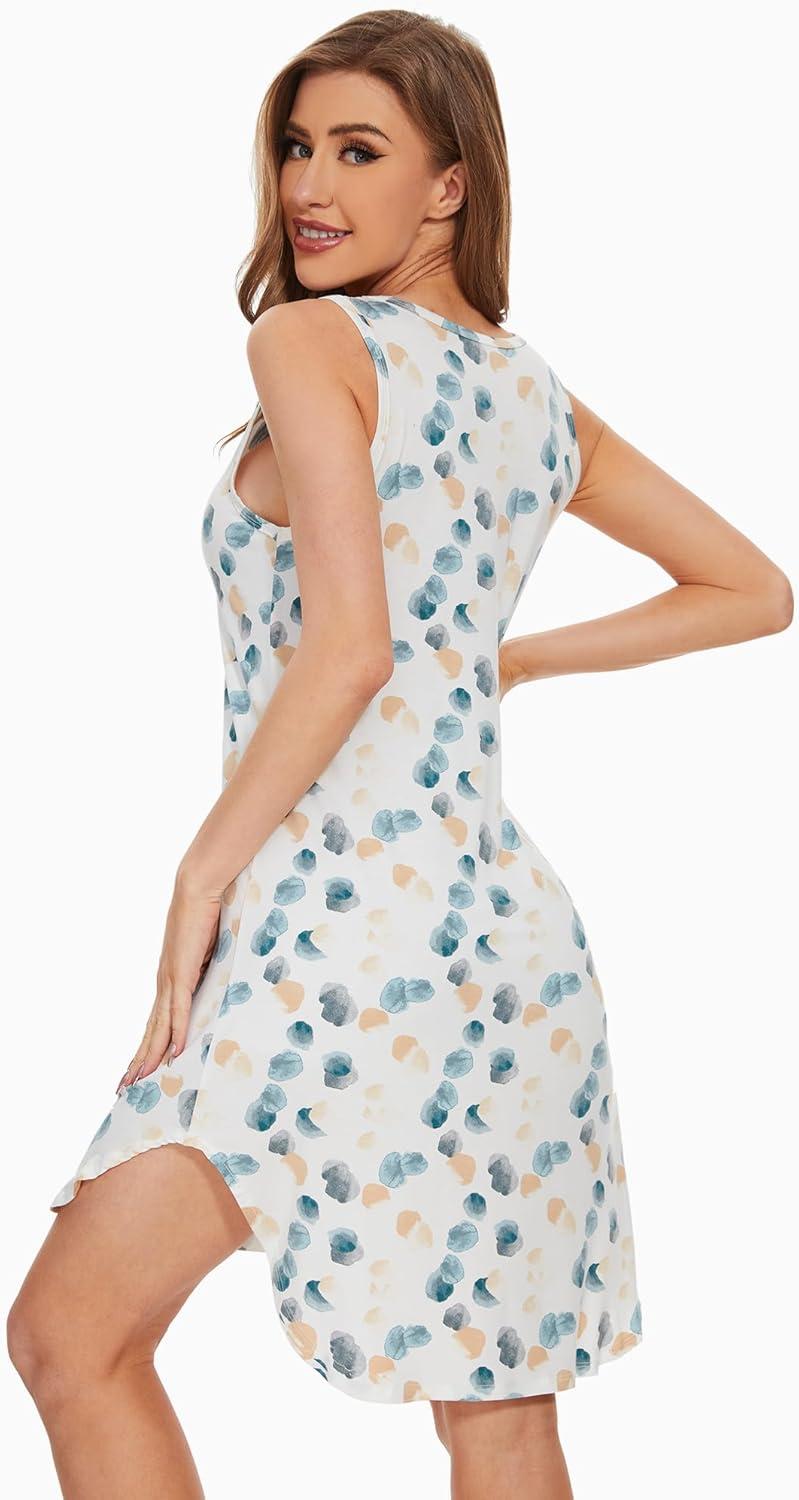 WiWi Viscose from Bamboo Nightgowns for Women Soft Sleeveless Tank Sleep Shirts Plus Size Sleepwear Night Dress S-4X(A-white/Green Dots)