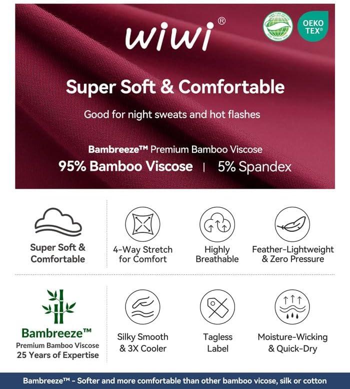 WiWi Viscose from Bamboo Pajama Sets for Women Soft Pjs Loungewear Short Sleeve Top with Pants Sleepwear Pajamas S-XXL(C-wine)