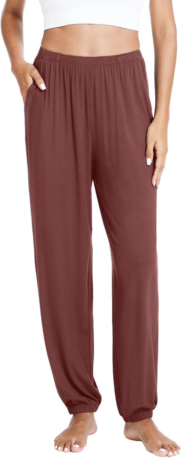 WiWi Viscose from Bamboo Pajamas Pants for Women Soft Yoga Jogger Pant Comfy Pajama Lounge Bottoms S-XXL(A-chocolate Brown)