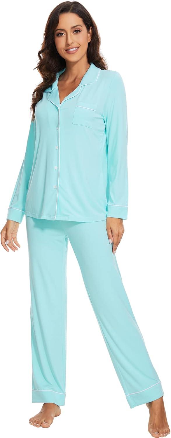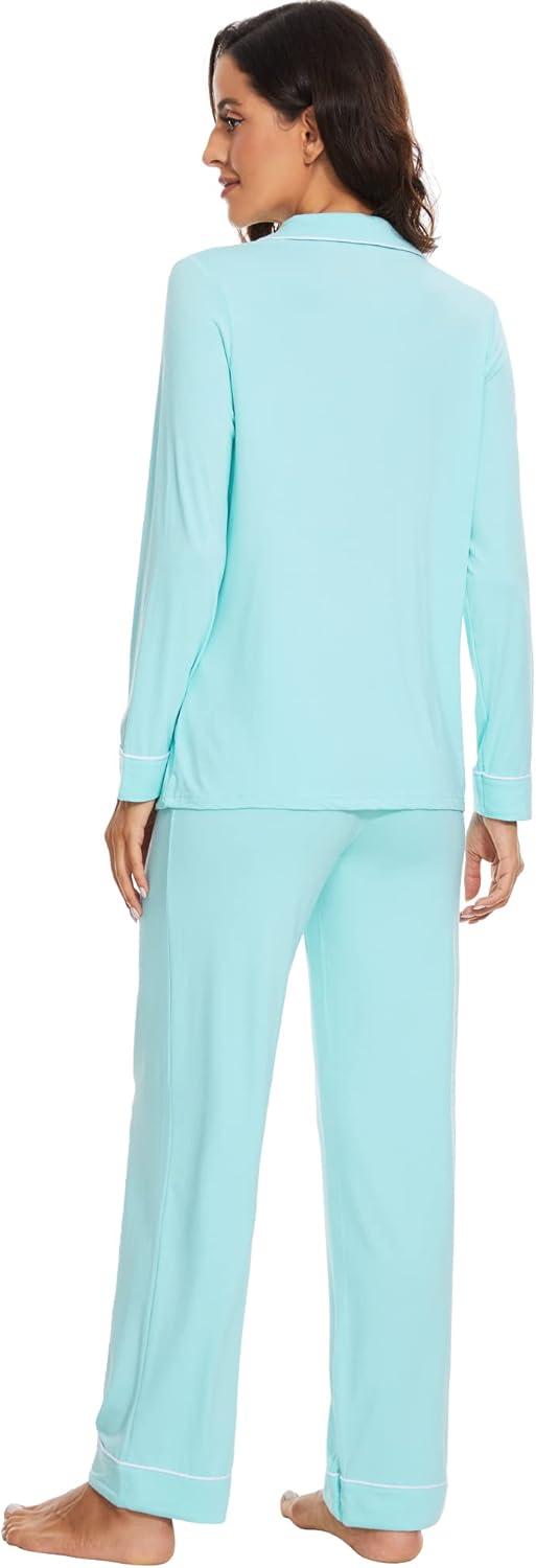 WiWi Viscose from Bamboo Pajamas Set for Women Soft Button Down Sleepwear Pj Lightweight Lounge Sets Loungewear S-XXL(A-aqua)