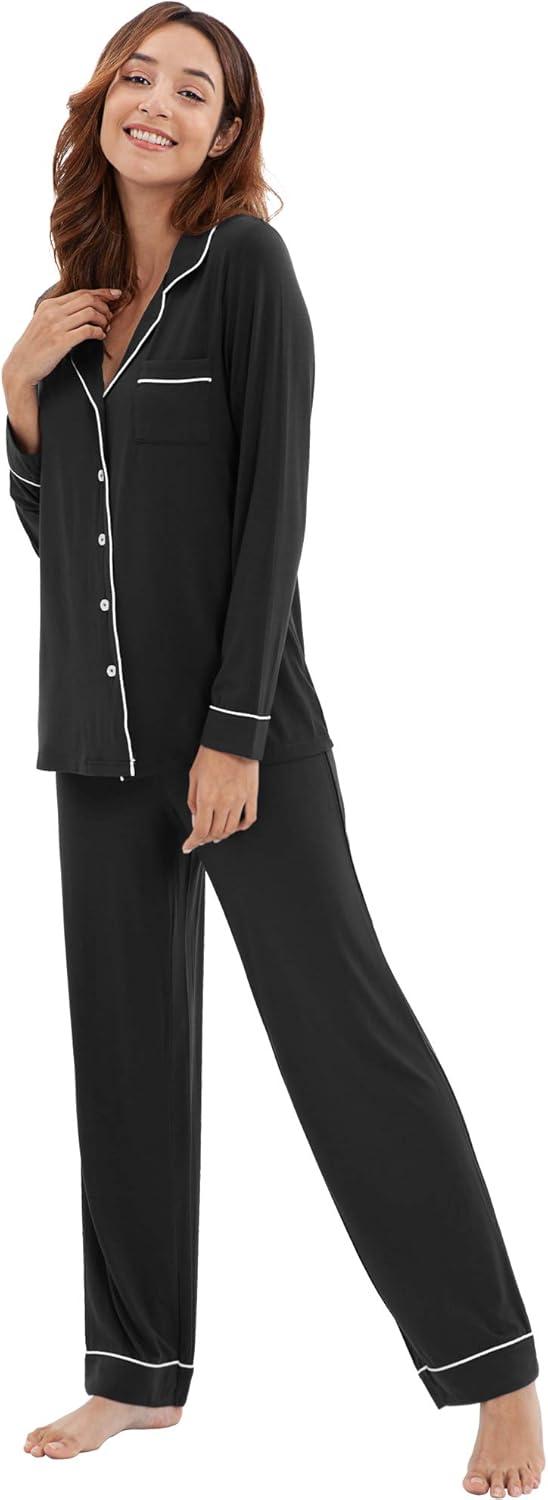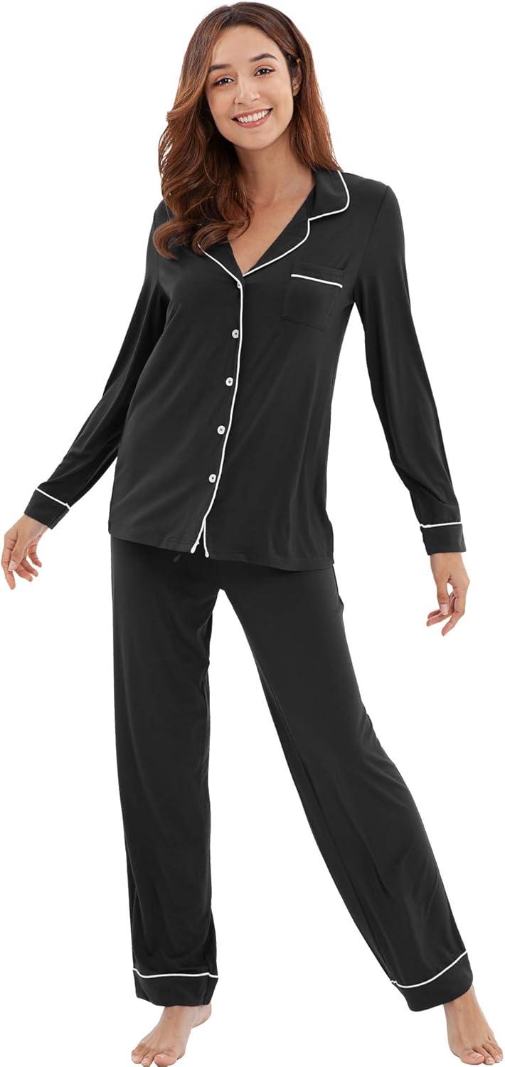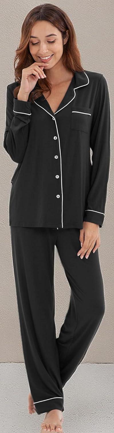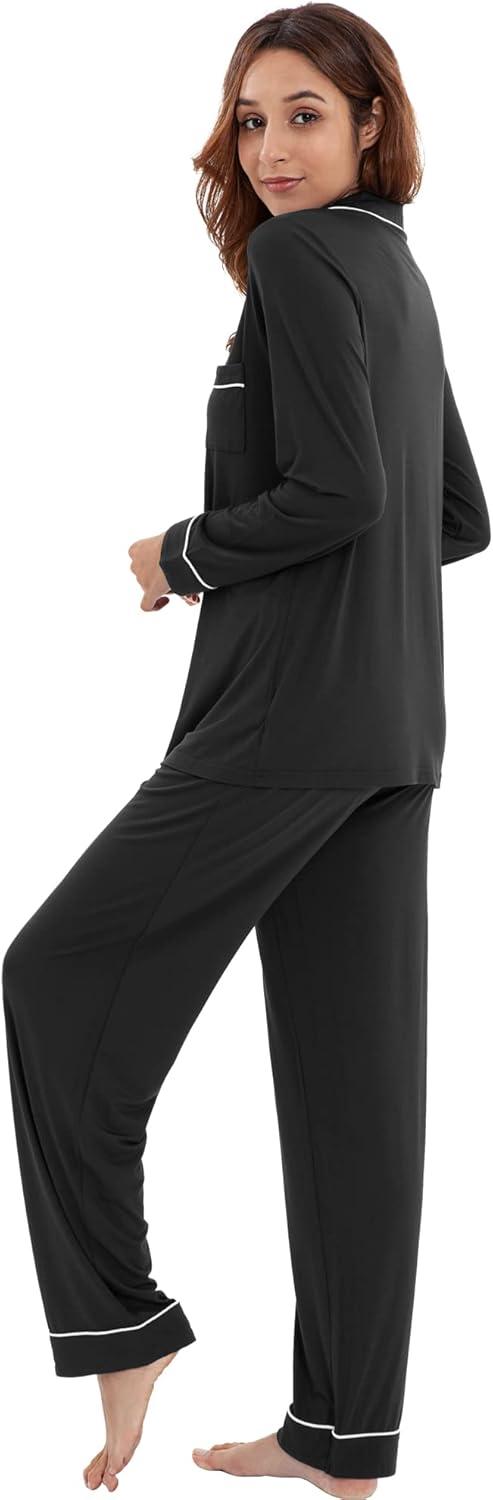 WiWi Viscose from Bamboo Pajamas Set for Women Soft Button Down Sleepwear Pj Lightweight Lounge Sets Loungewear S-XXL(A-black)