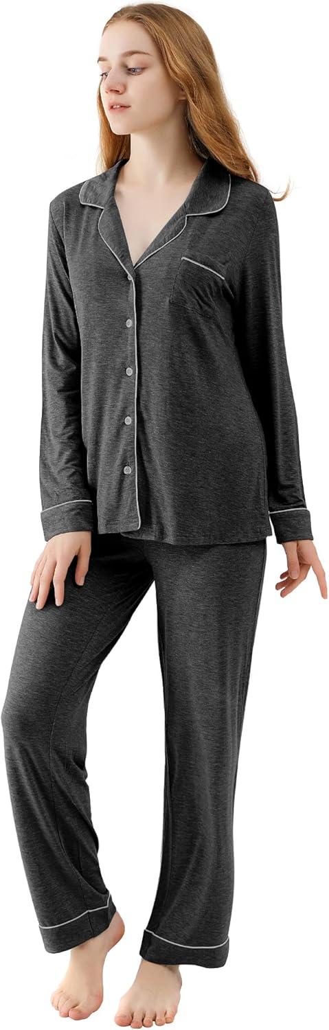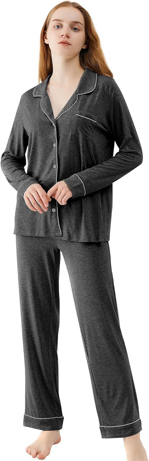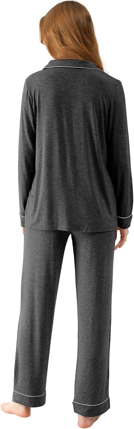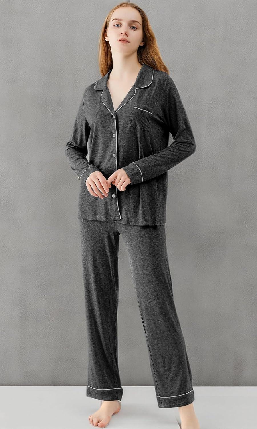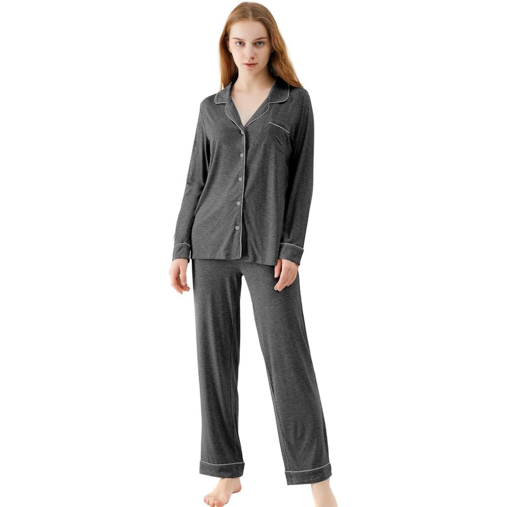 WiWi Viscose from Bamboo Pajamas Set for Women Soft Button Down Sleepwear Pj Lightweight Lounge Sets Loungewear S-XXL(A-charcoal Heather)