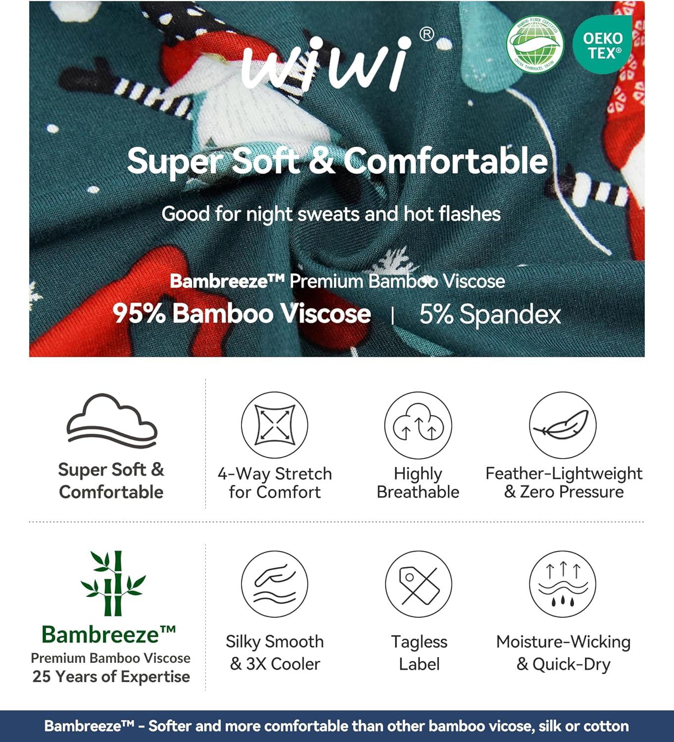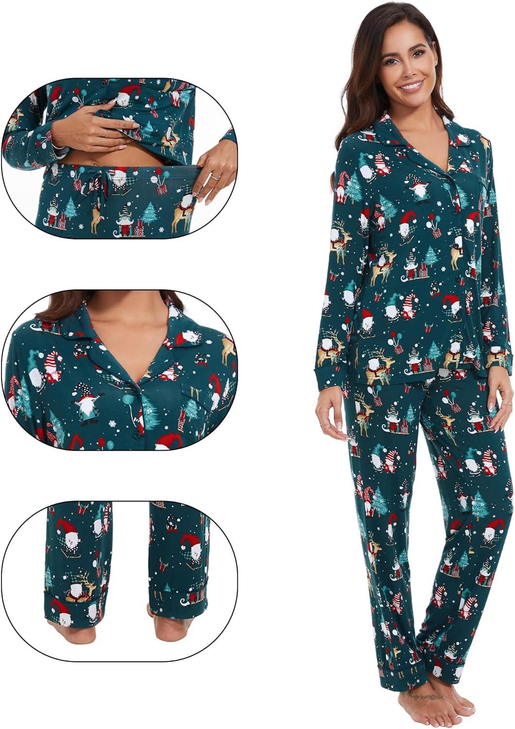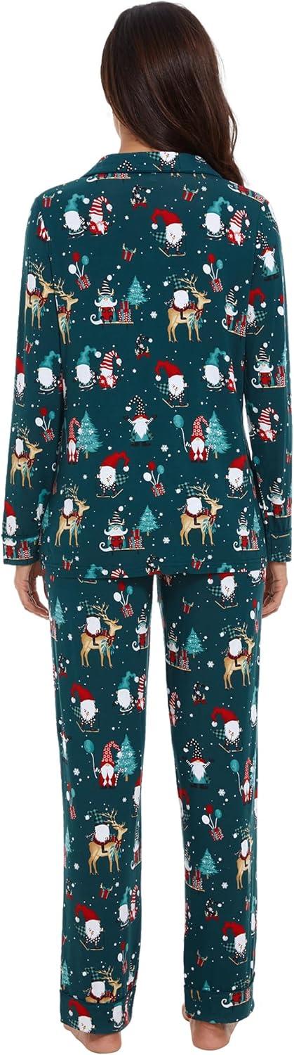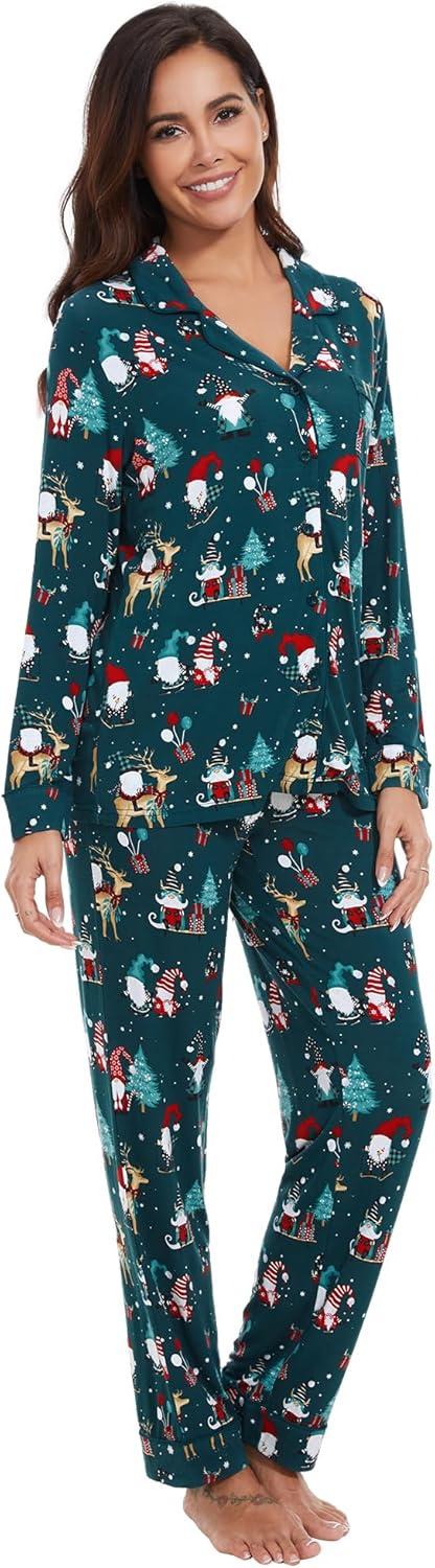 WiWi Viscose from Bamboo Pajamas Set for Women Soft Button Down Sleepwear Pj Lightweight Lounge Sets Loungewear S-XXL(A-christmas Elk on Green)