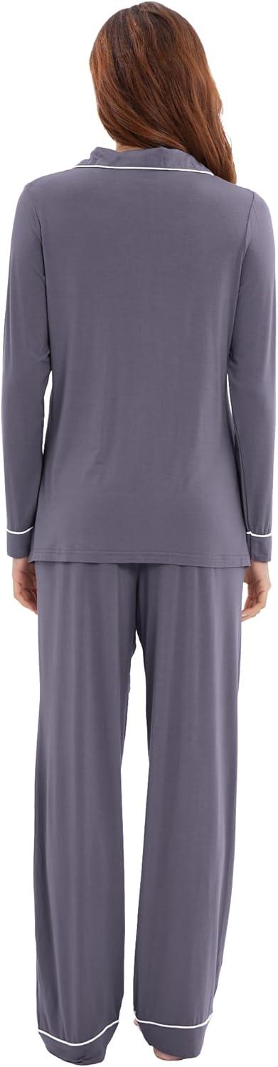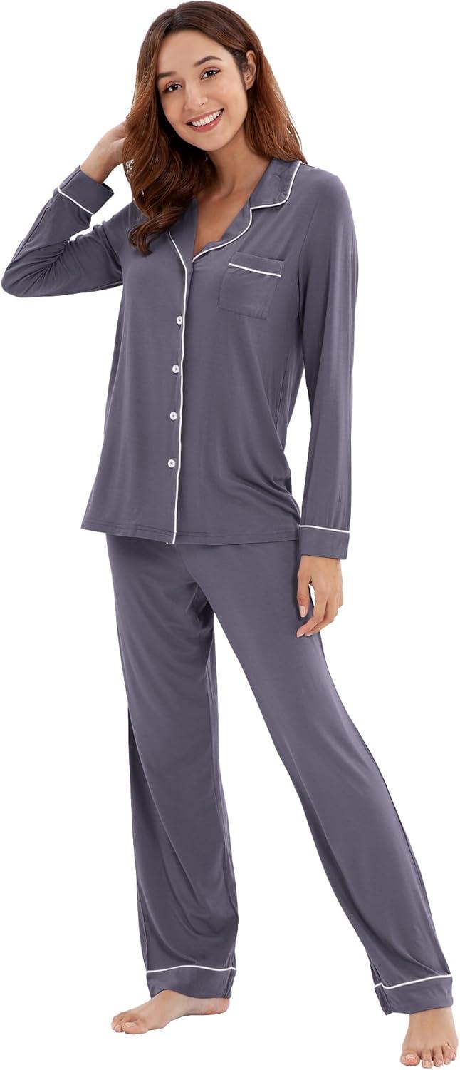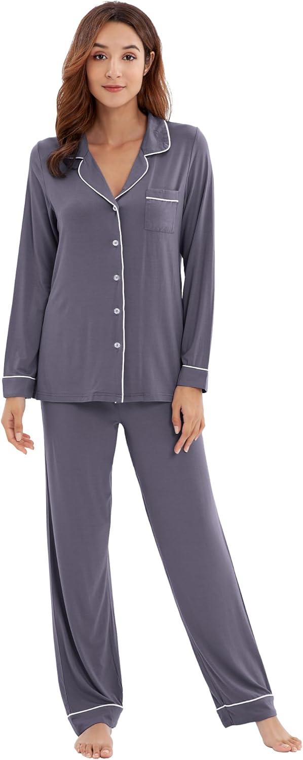 WiWi Viscose from Bamboo Pajamas Set for Women Soft Button Down Sleepwear Pj Lightweight Lounge Sets Loungewear S-XXL(A-dark Grey)