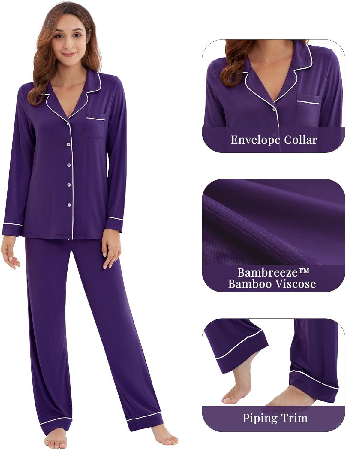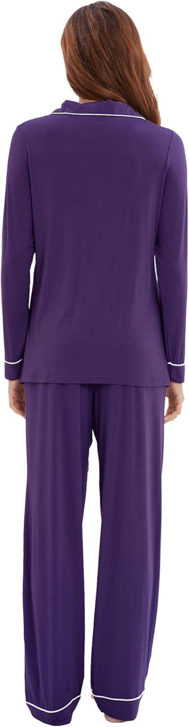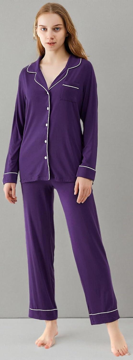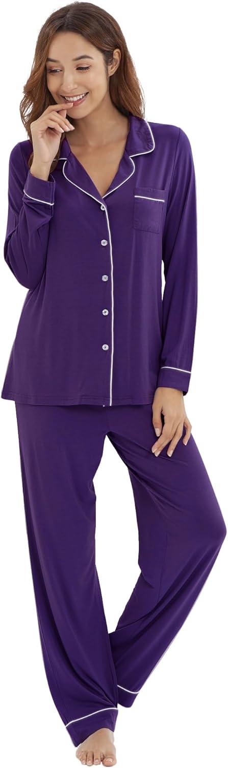WiWi Viscose from Bamboo Pajamas Set for Women Soft Button Down Sleepwear Pj Lightweight Lounge Sets Loungewear S-XXL(A-dark Purple)