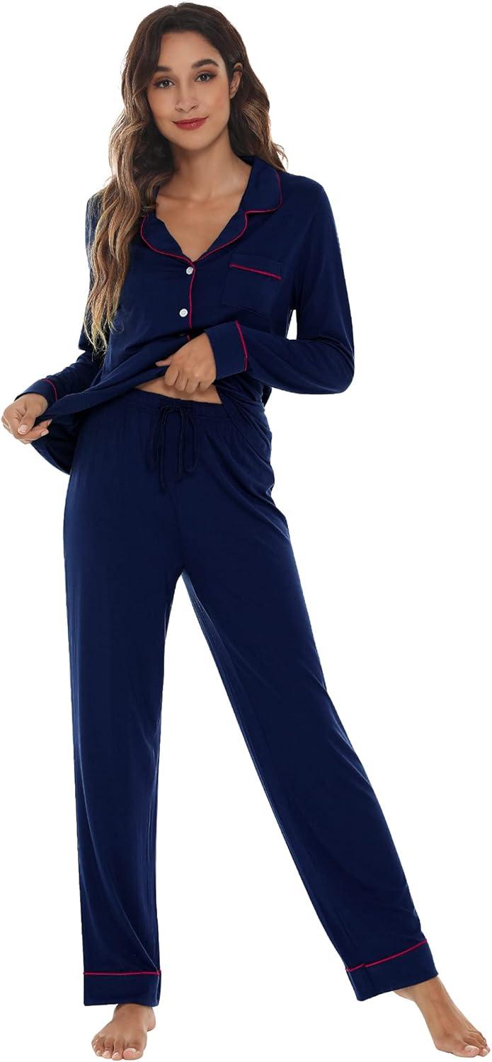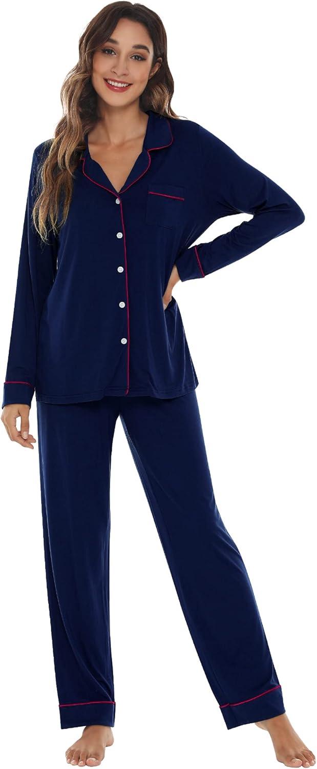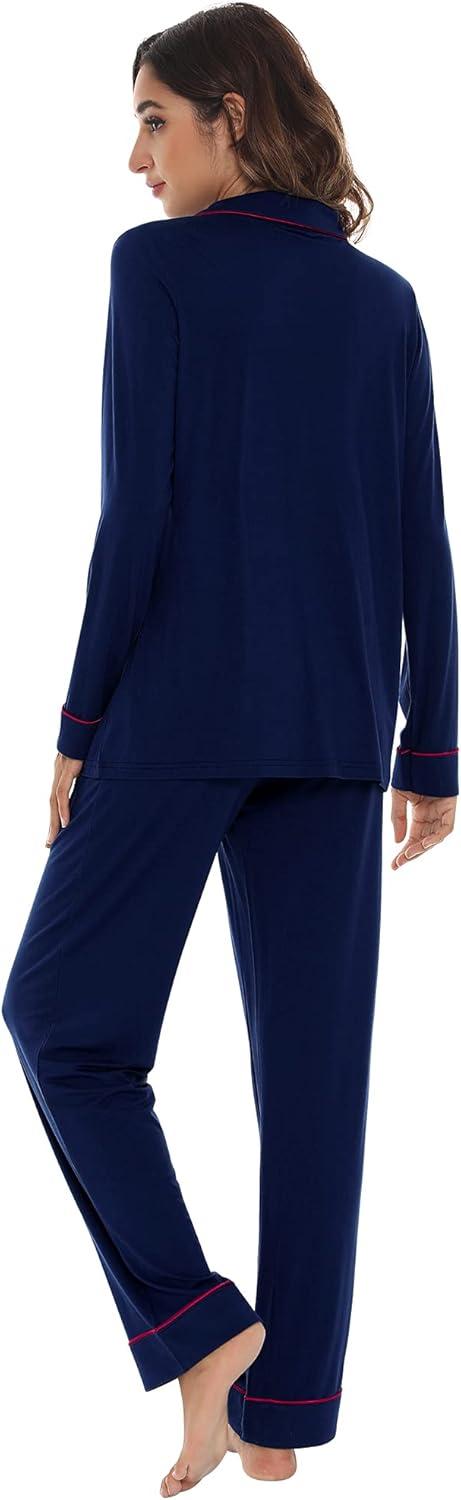 WiWi Viscose from Bamboo Pajamas Set for Women Soft Button Down Sleepwear Pj Lightweight Lounge Sets Loungewear S-XXL(A-navy/Pink)
