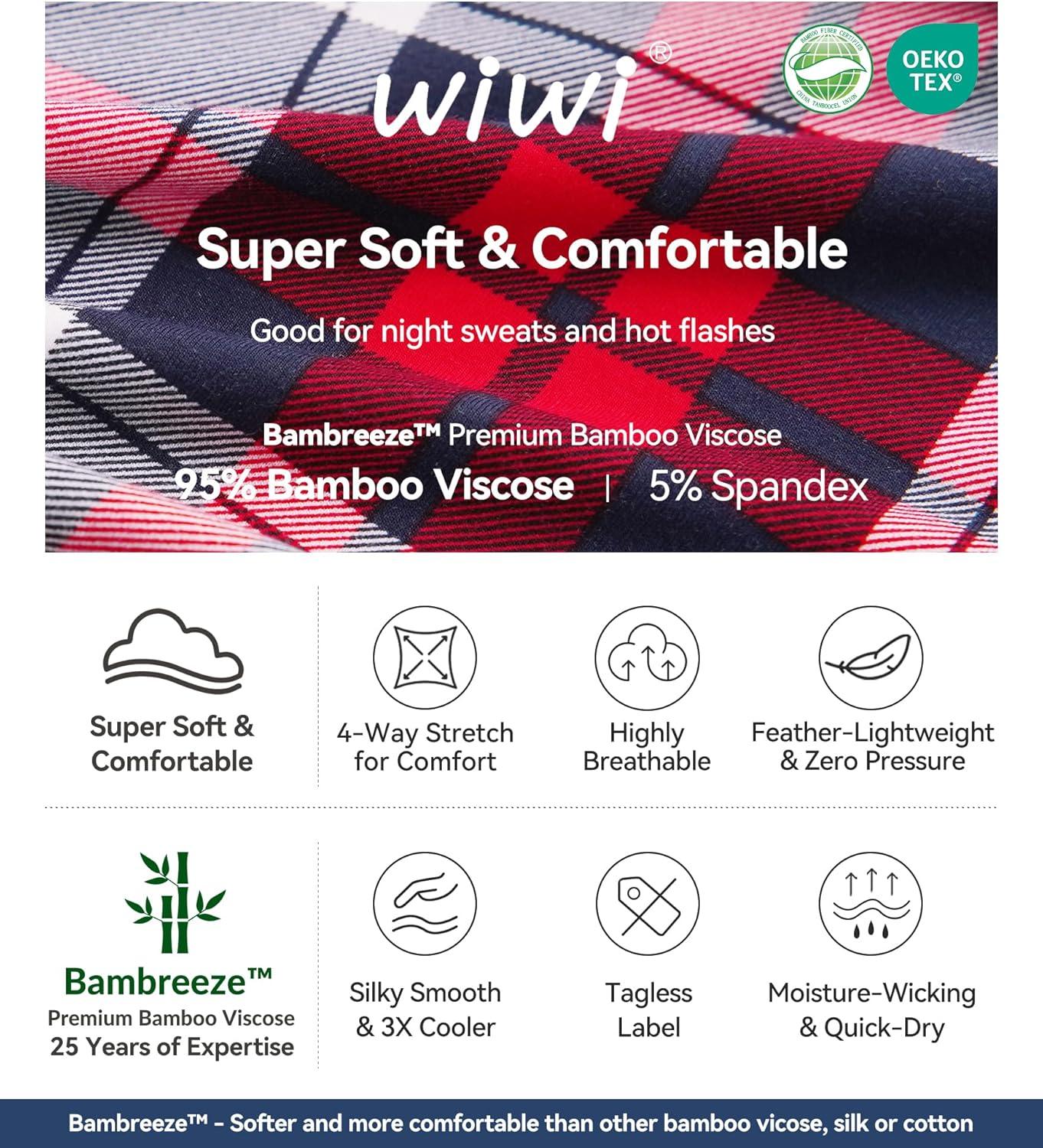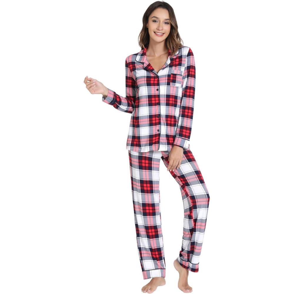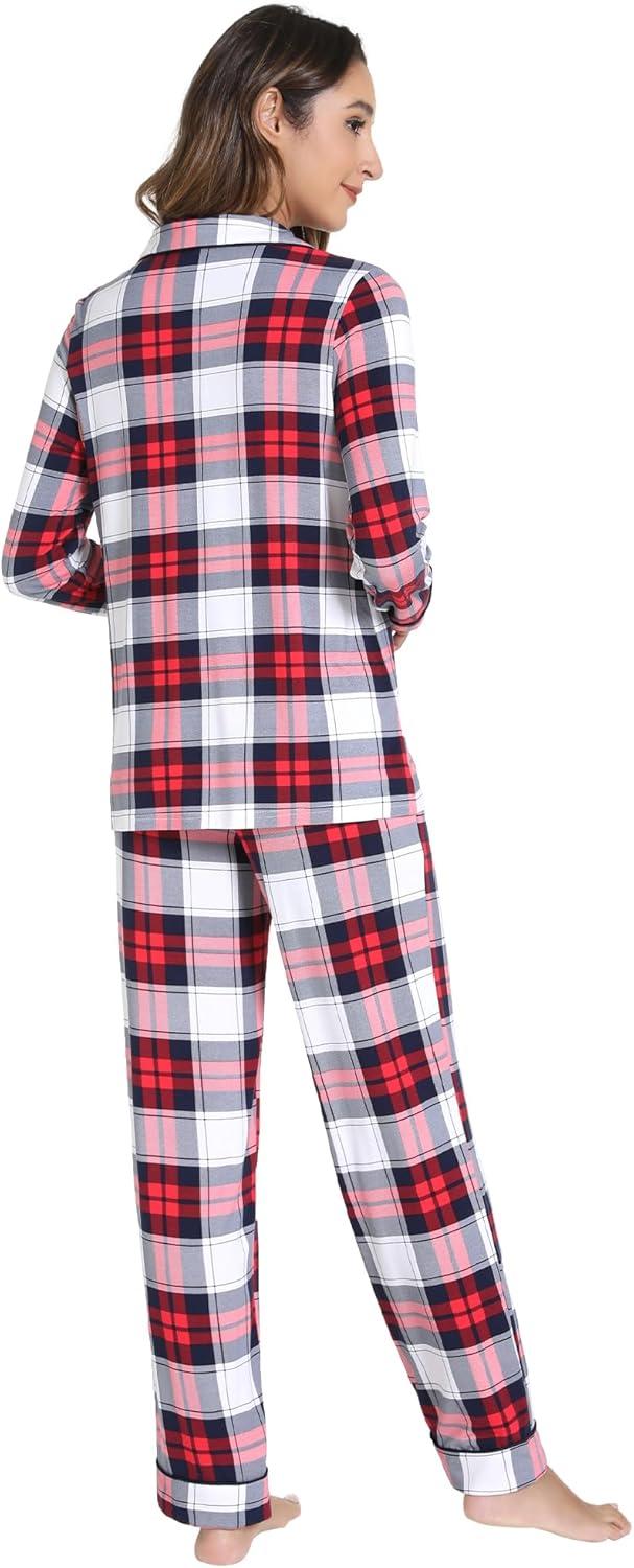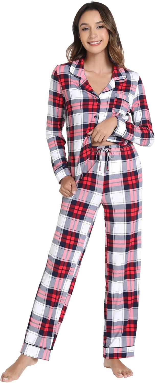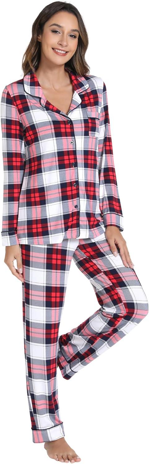 WiWi Viscose from Bamboo Pajamas Set for Women Soft Button Down Sleepwear Pj Lightweight Lounge Sets Loungewear S-XXL(A-navy/Red Plaid)