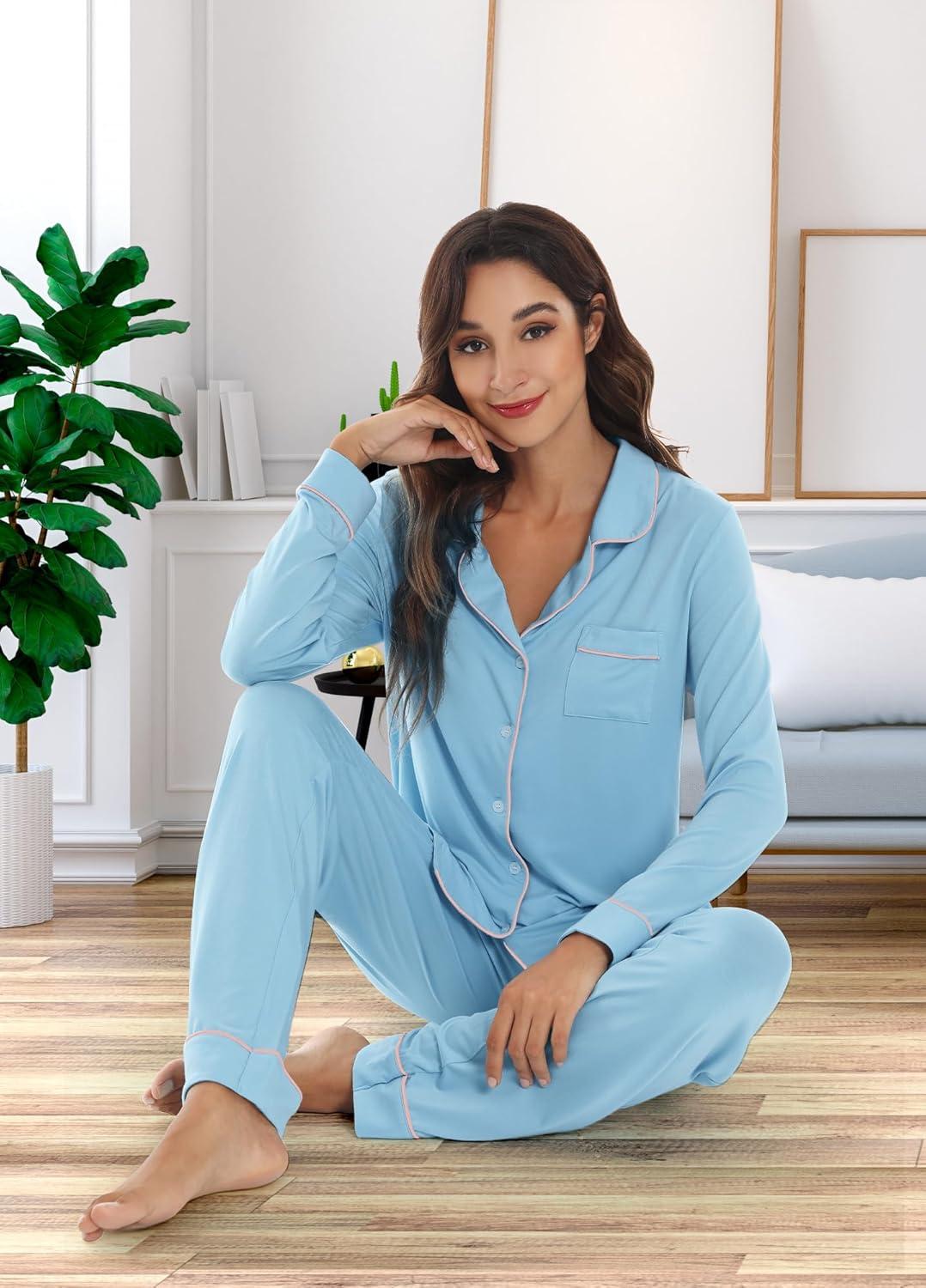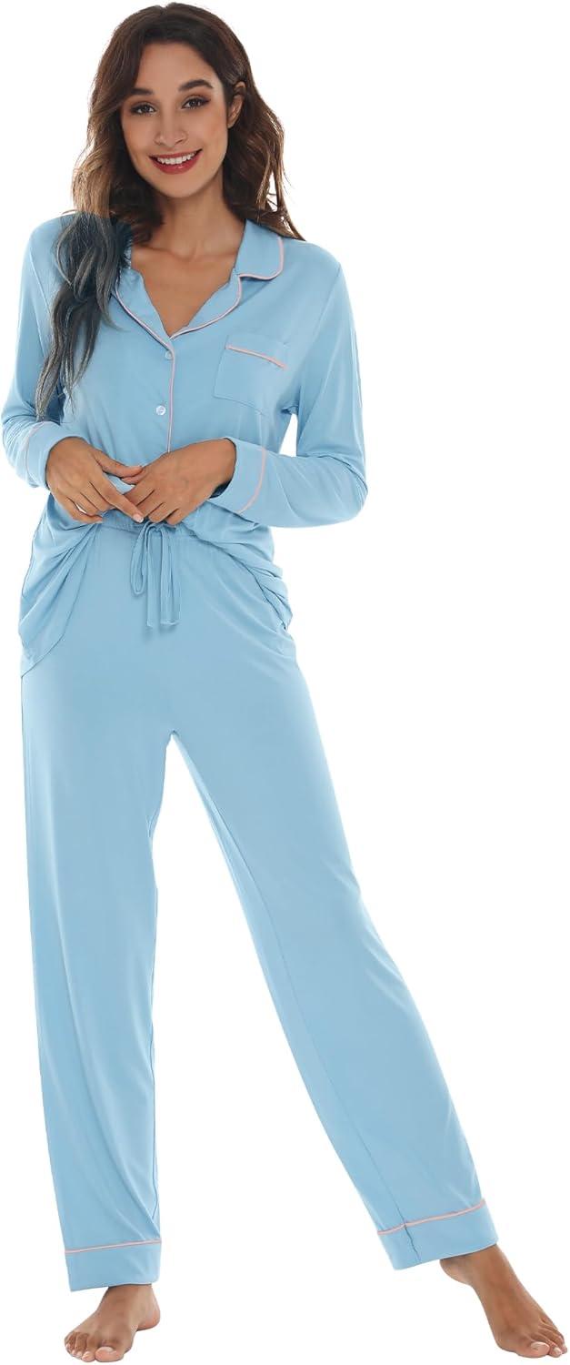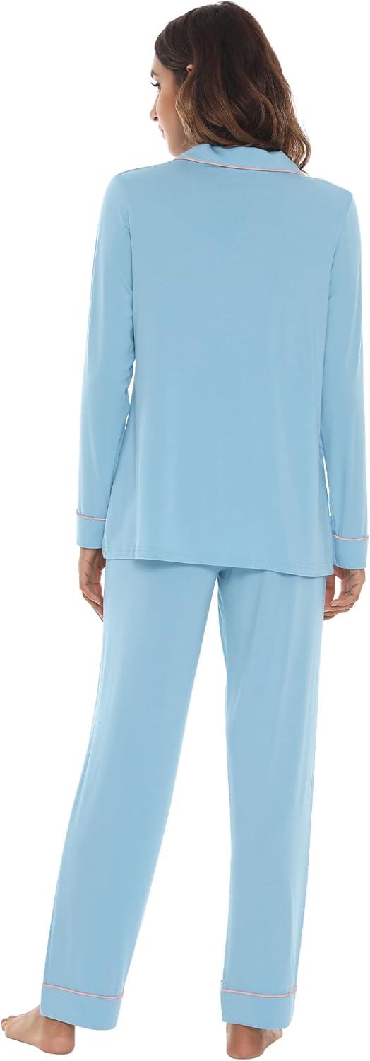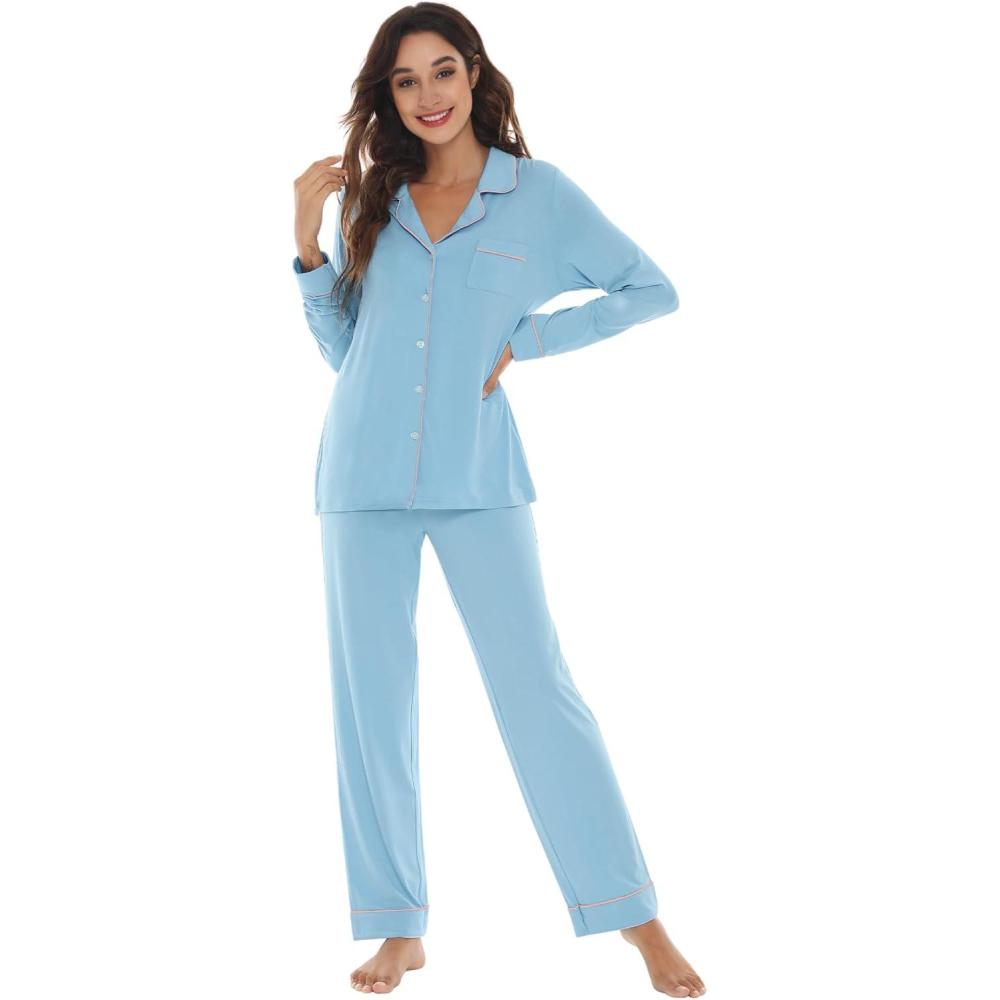 WiWi Viscose from Bamboo Pajamas Set for Women Soft Button Down Sleepwear Pj Lightweight Lounge Sets Loungewear S-XXL(A-pale Blue)