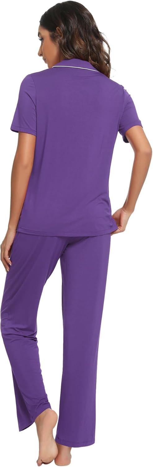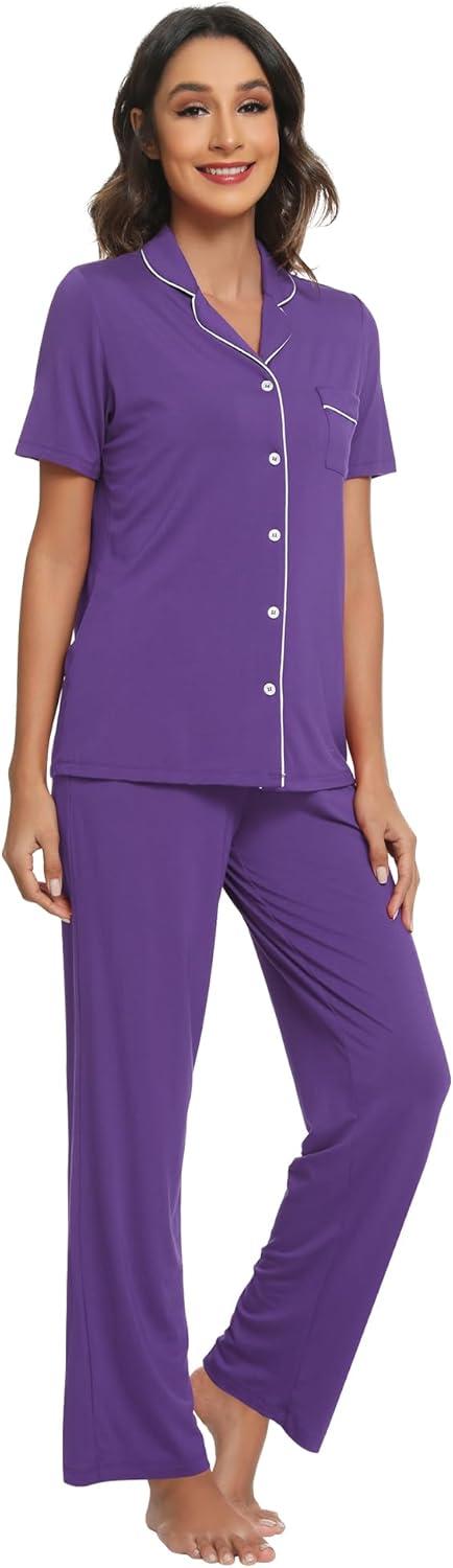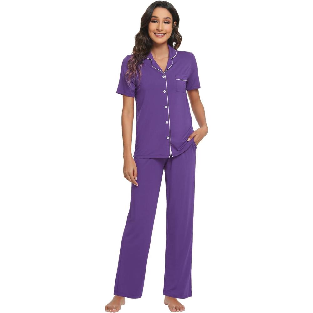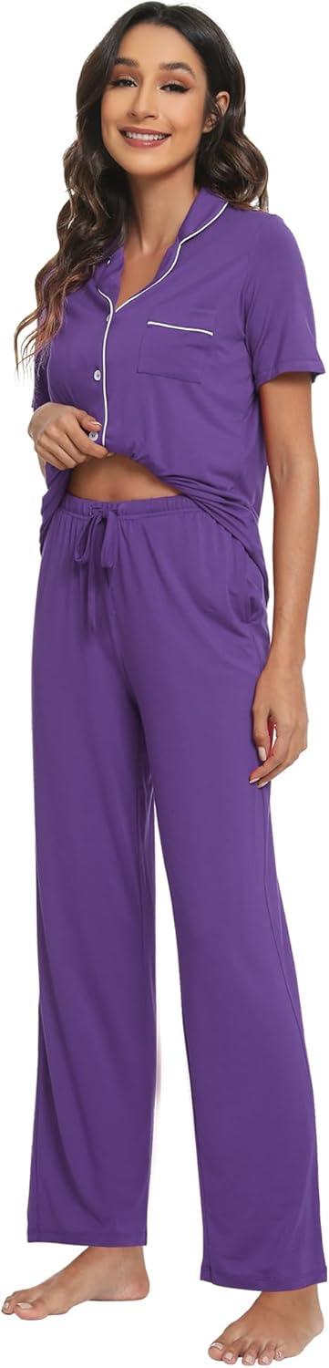 WiWi Viscose from Bamboo Pajamas Set for Women Soft Button Down Sleepwear Pj Lightweight Lounge Sets Loungewear S-XXL(B-lilac)