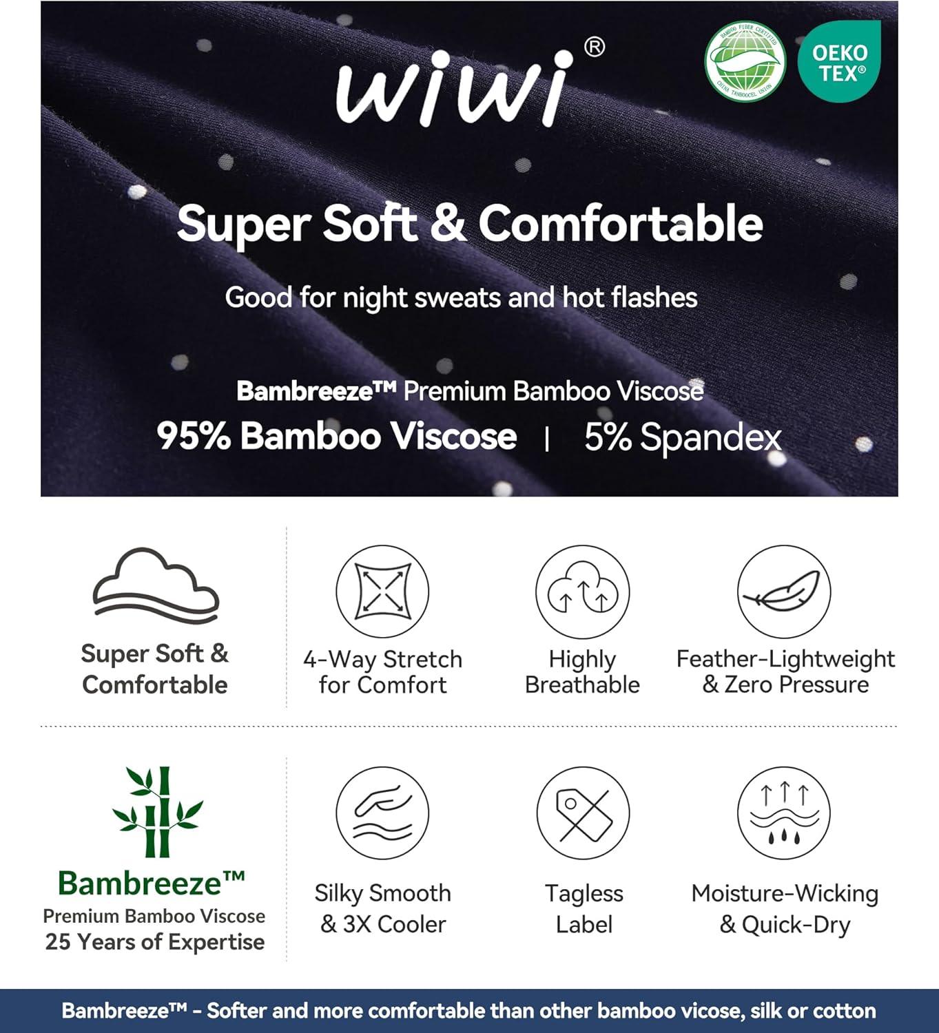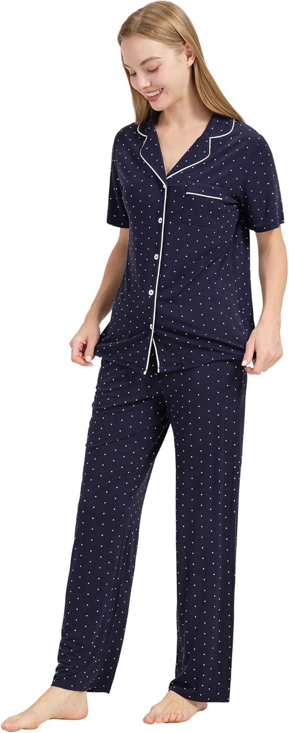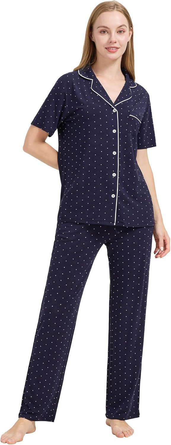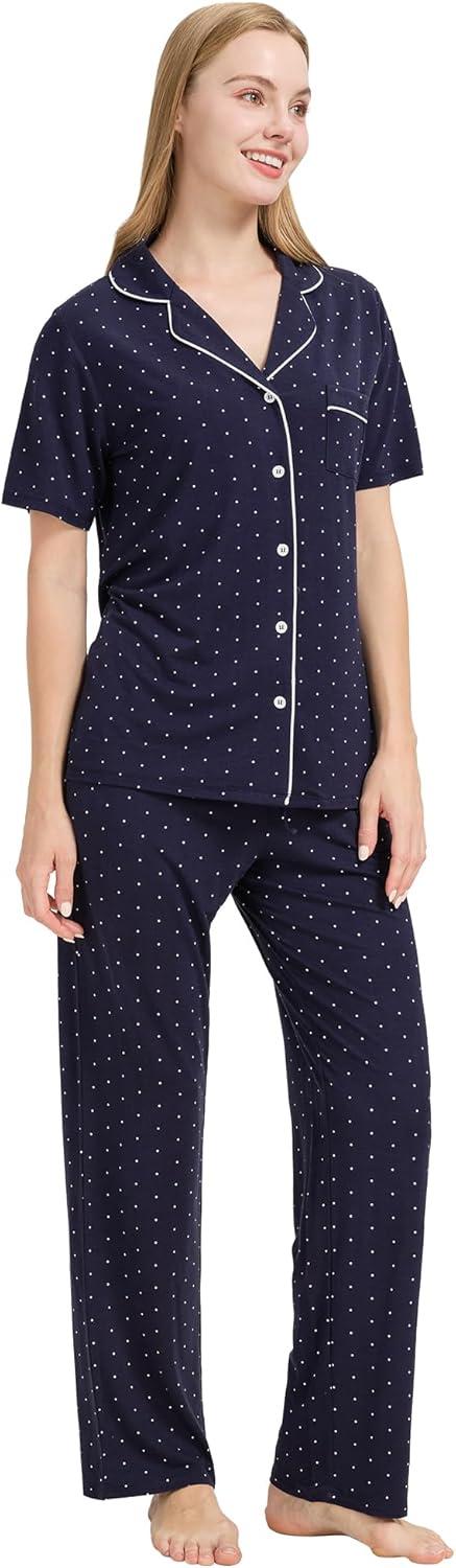 WiWi Viscose from Bamboo Pajamas Set for Women Soft Button Down Sleepwear Pj Lightweight Lounge Sets Loungewear S-XXL(B-navy/White Dots)