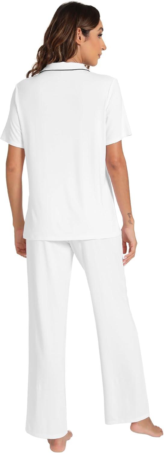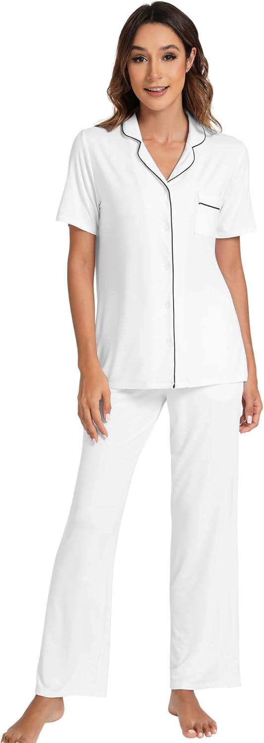 WiWi Viscose from Bamboo Pajamas Set for Women Soft Button Down Sleepwear Pj Lightweight Lounge Sets Loungewear S-XXL(B-pure White)