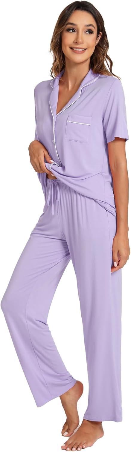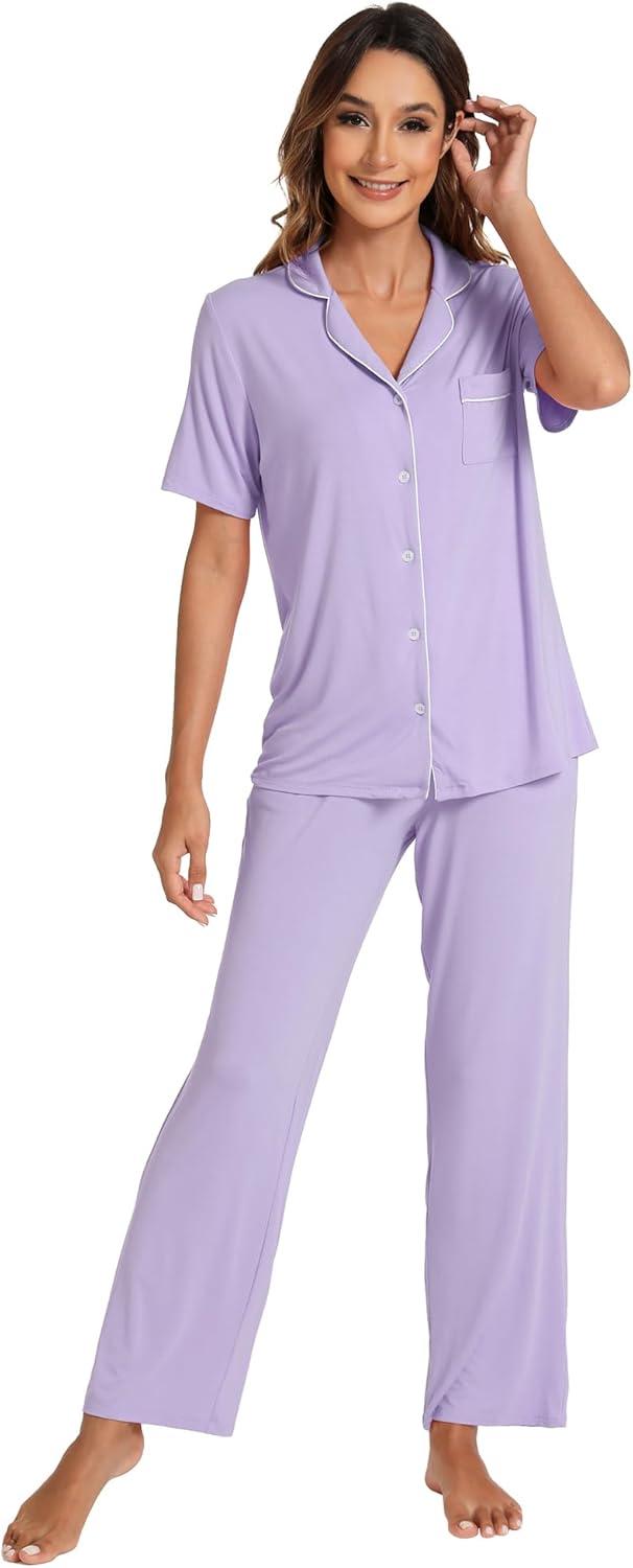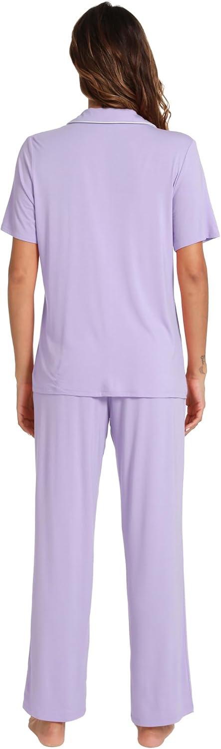 WiWi Viscose from Bamboo Pajamas Set for Women Soft Button Down Sleepwear Pj Lightweight Lounge Sets Loungewear S-XXL(B-violet)