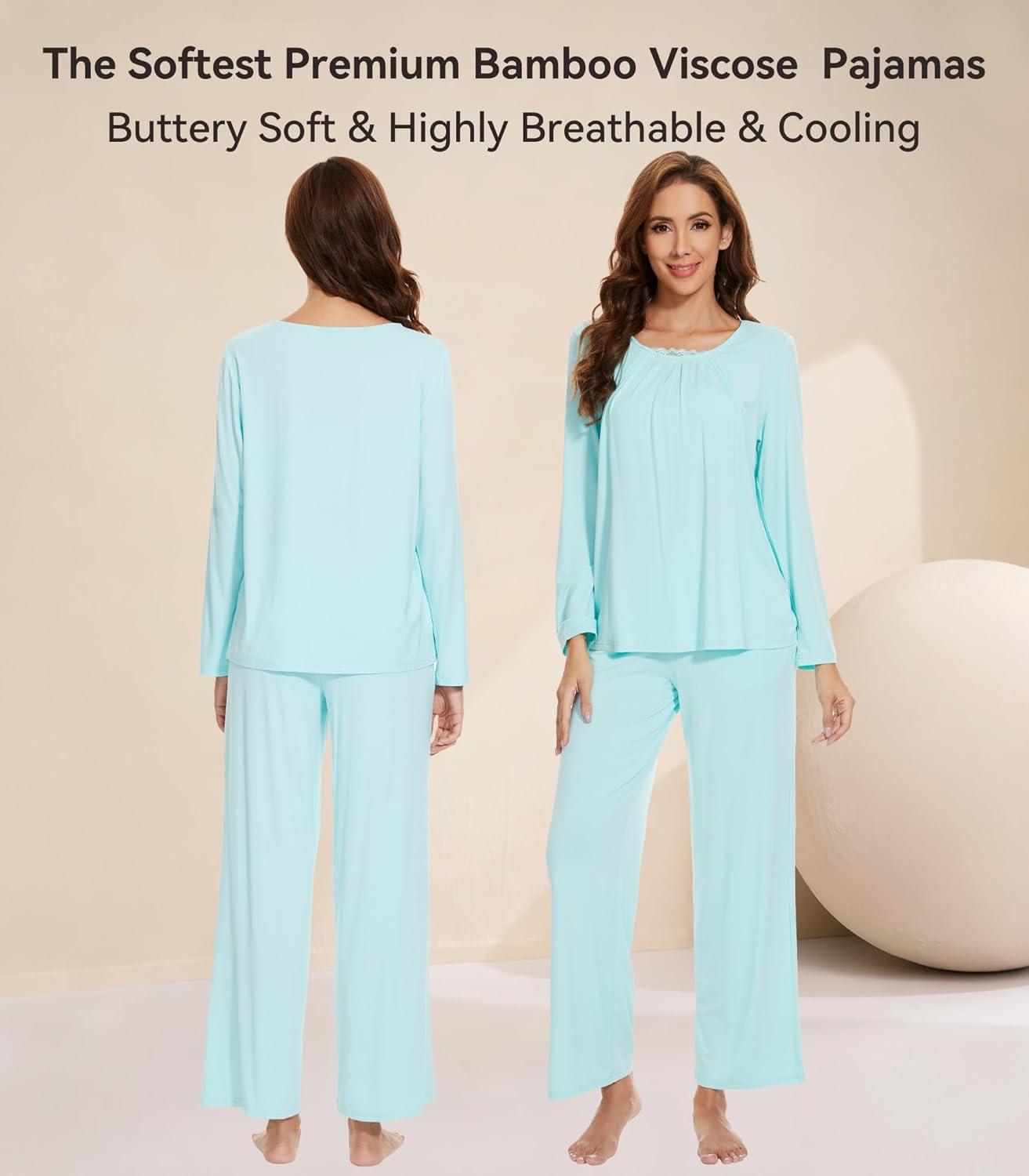 WiWi Viscose from Bamboo Pajamas Sets for Women Long Sleeve Sleepwear Soft V Neck Top with Pants Plus Size Pjs S-4X(B-aqua)