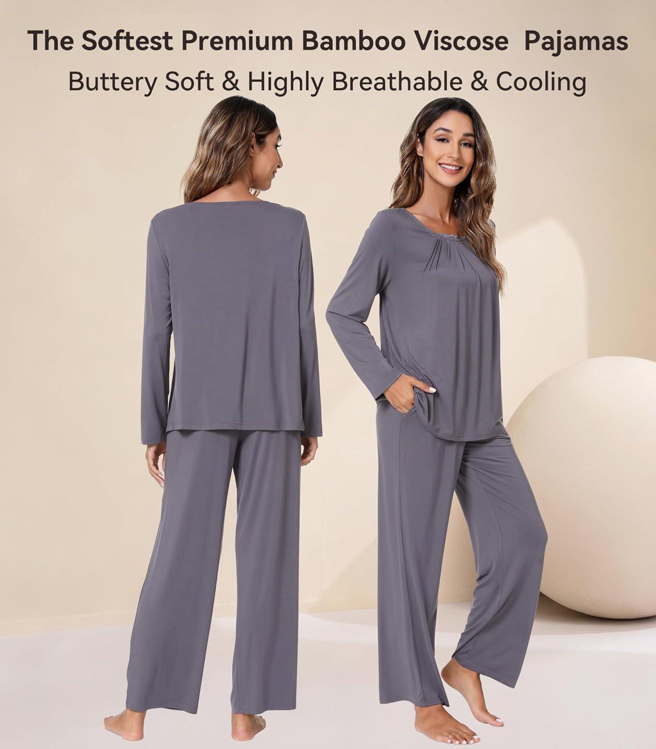 WiWi Viscose from Bamboo Pajamas Sets for Women Long Sleeve Sleepwear Soft V Neck Top with Pants Plus Size Pjs S-4X(B-dark Grey)
