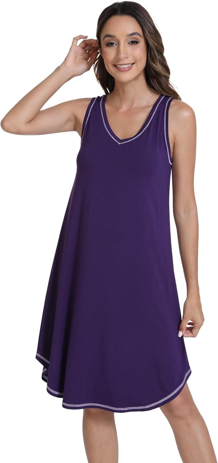 WiWi Viscose from Bamboo Tank Nightgown for Women V-Neck Sleeveless Sleep Gowns S-XXL(A-dark Purple)
