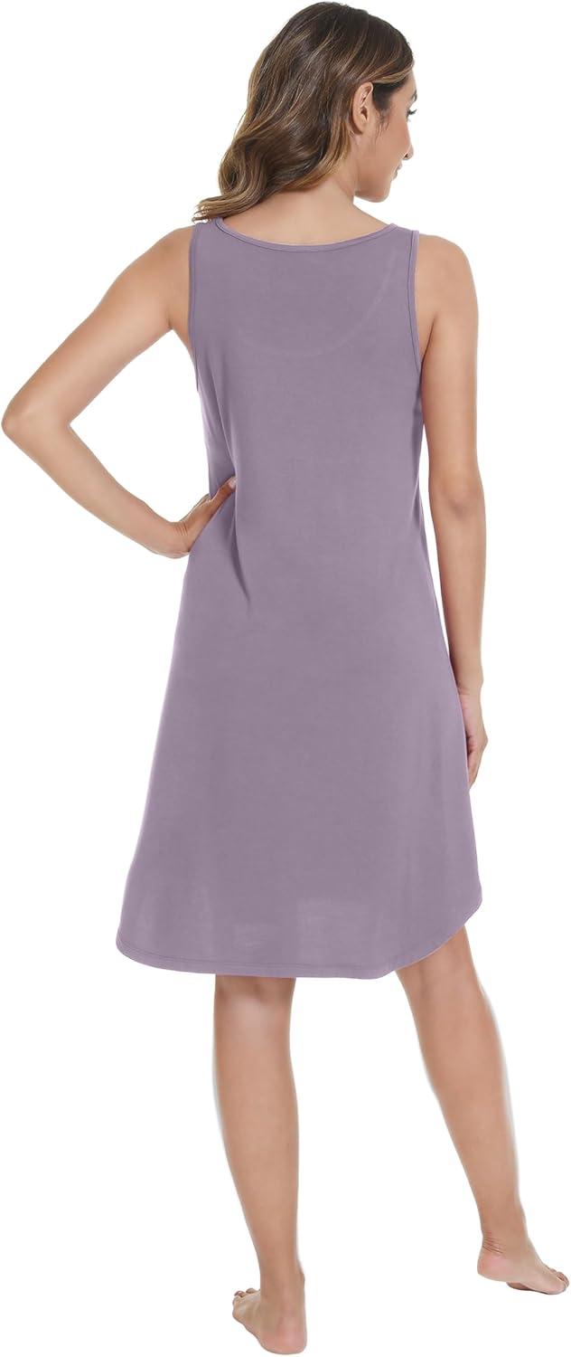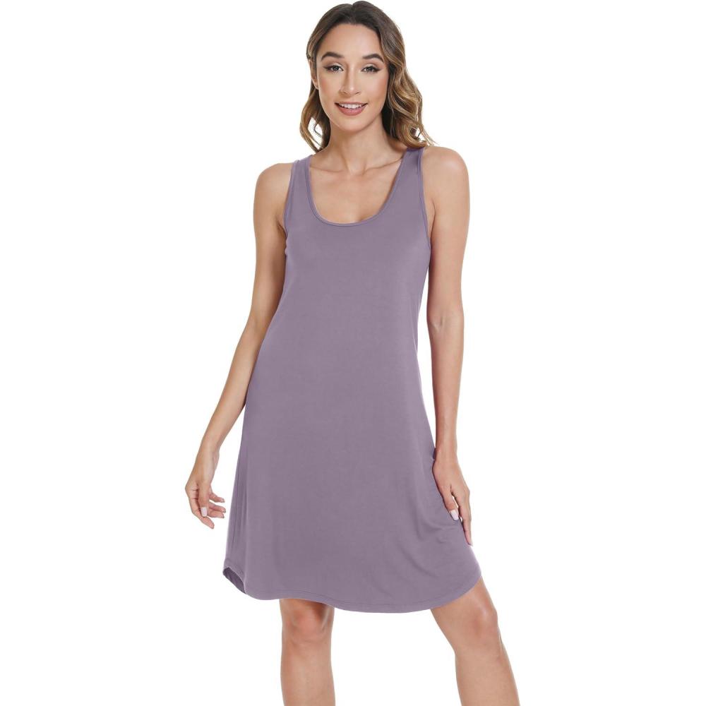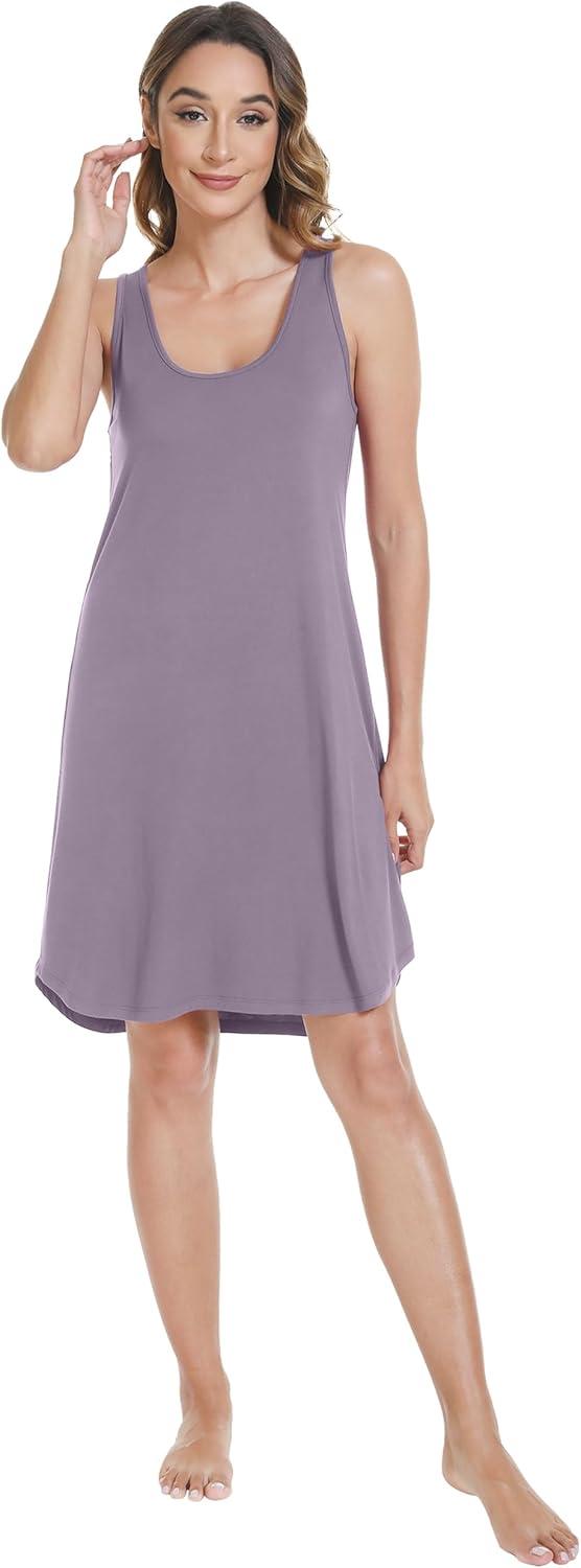 WiWi Viscose from Bamboo Tank Nightgown for Women V-Neck Sleeveless Sleep Gowns S-XXL(B-purple)
