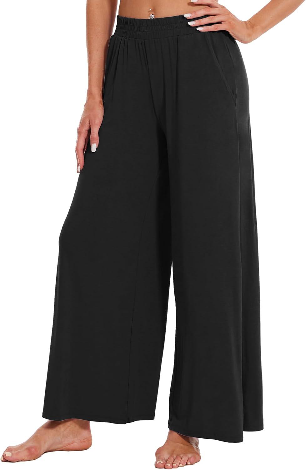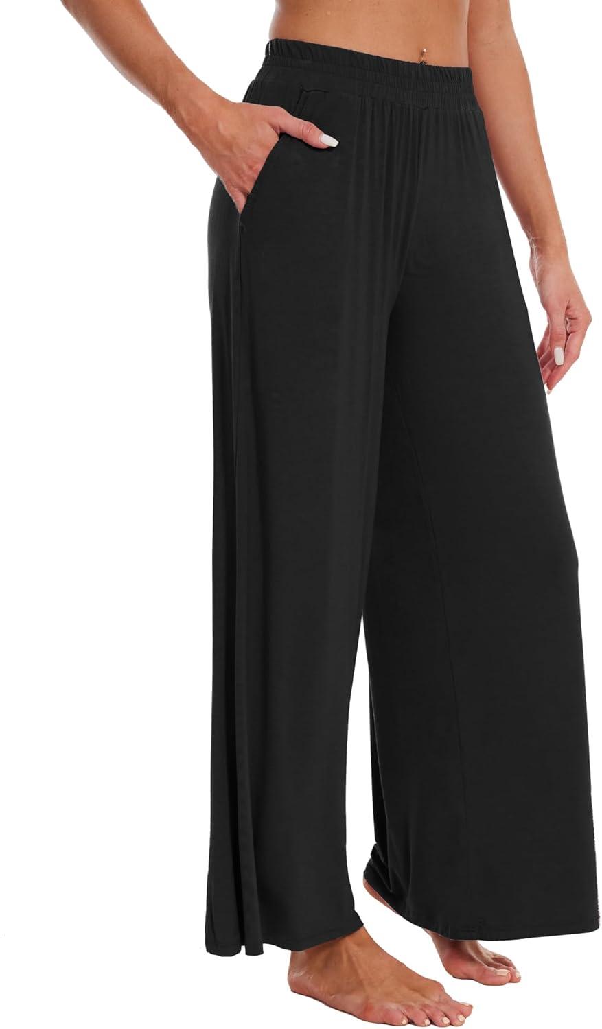 WiWi Viscose from Bamboo Women' s Pajamas Pants Soft Yoga Loose Pant Comfy Pajama Bottoms S-XXL(A-black)