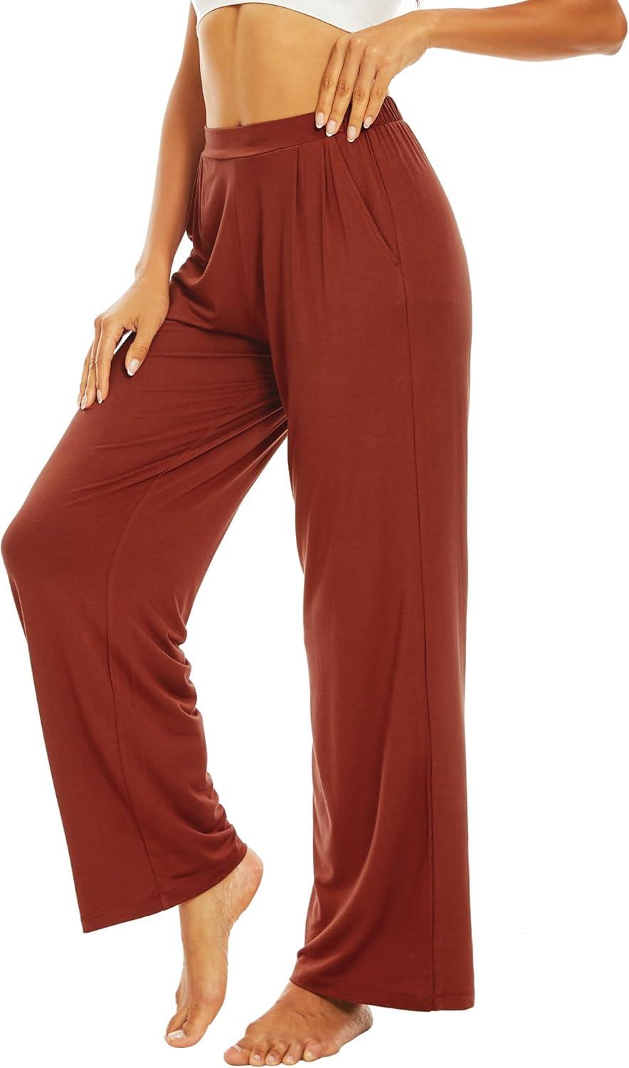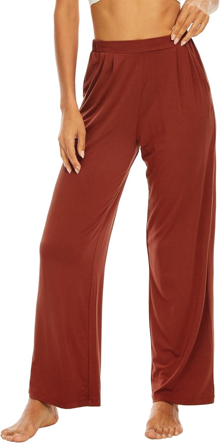 WiWi Viscose from Bamboo Women' s Pajamas Pants Soft Yoga Loose Pant Comfy Pajama Bottoms S-XXL(B-brickred)