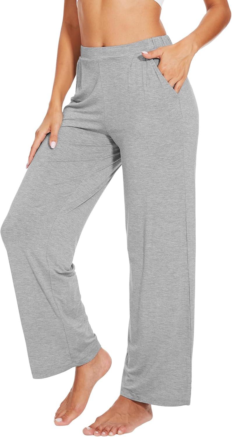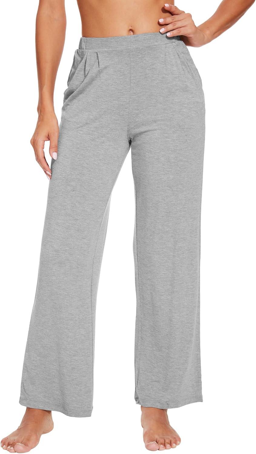 WiWi Viscose from Bamboo Women' s Pajamas Pants Soft Yoga Loose Pant Comfy Pajama Bottoms S-XXL(B-heather Grey)