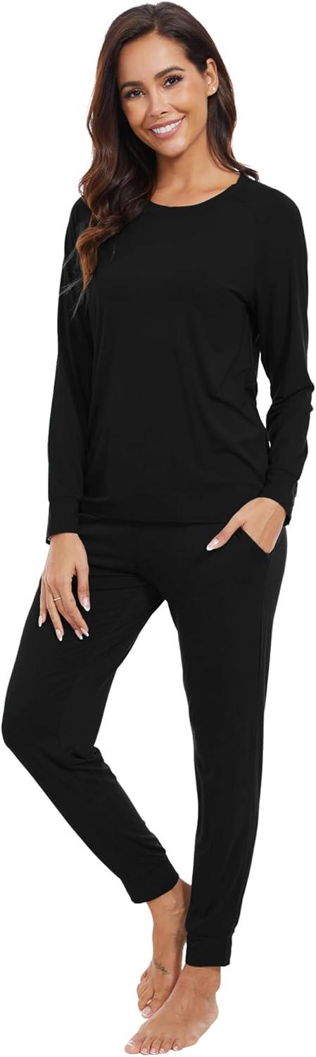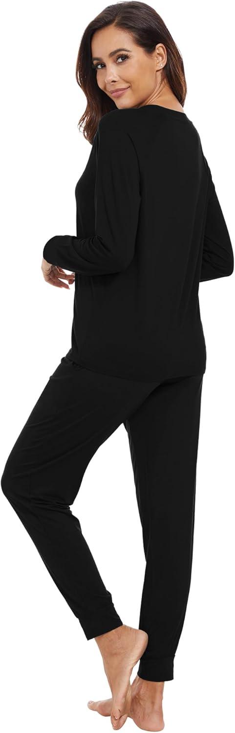 WiWi Viscose from Bamboo Women's Pajama Set Soft Long Sleeve Pajamas Sets S-XXL(A-black)