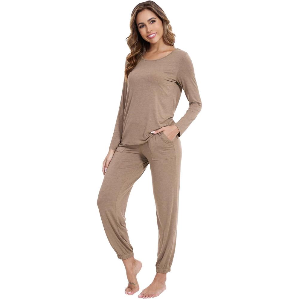 WiWi Viscose from Bamboo Women's Pajama Set Soft Long Sleeve Pajamas Sets S-XXL(C-camel)