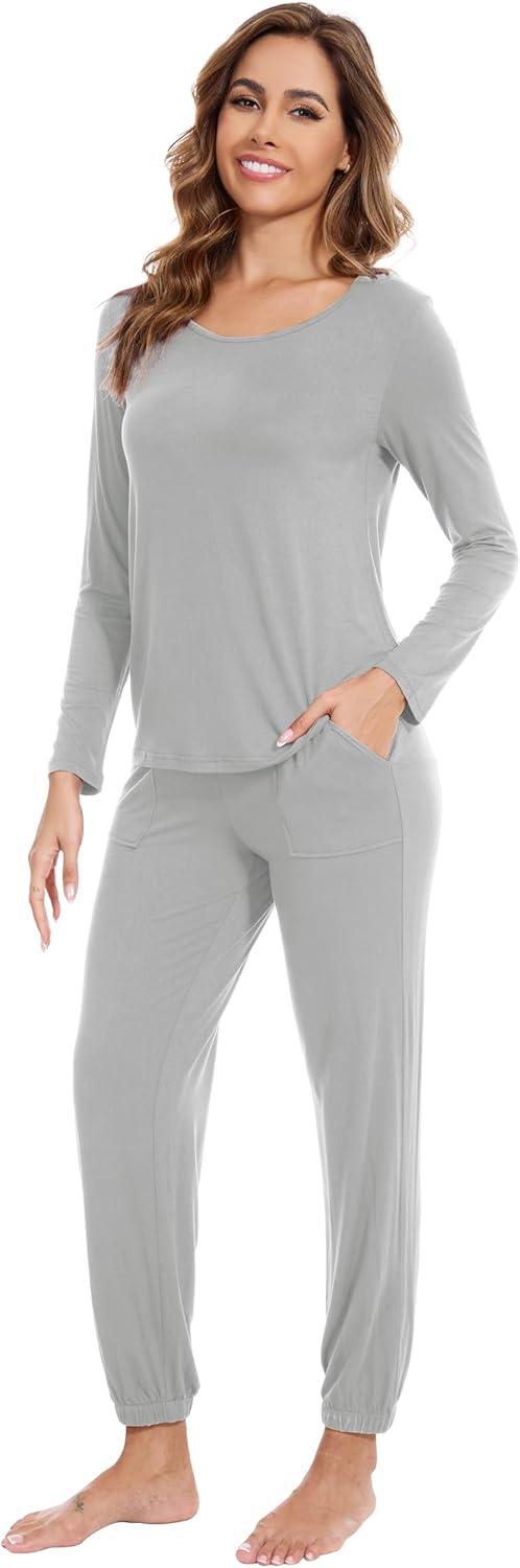 WiWi Viscose from Bamboo Women’s Pajama Set Soft Long Sleeve Pajamas Sets S-XXL(C-heather Grey)