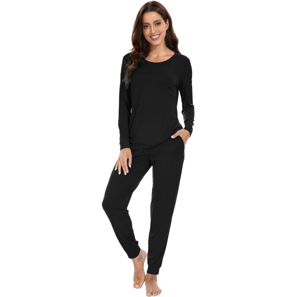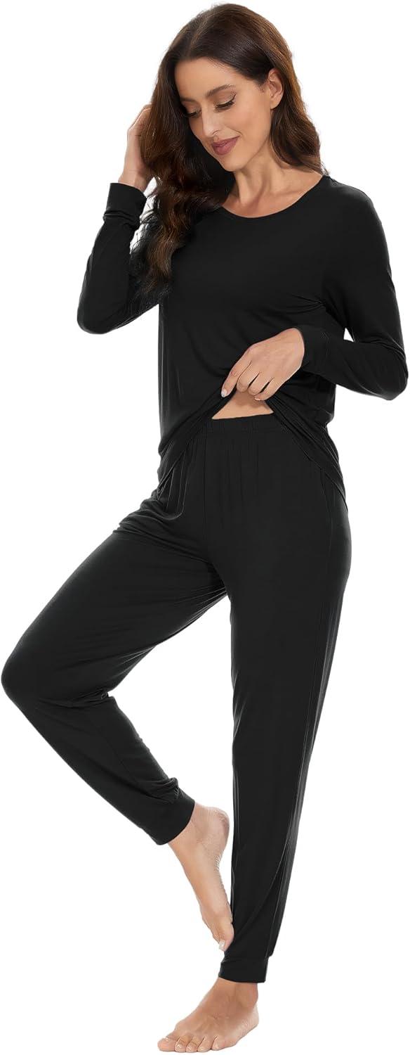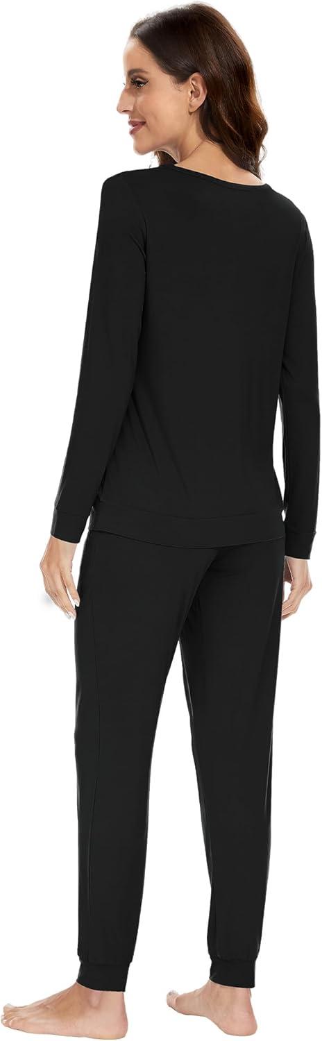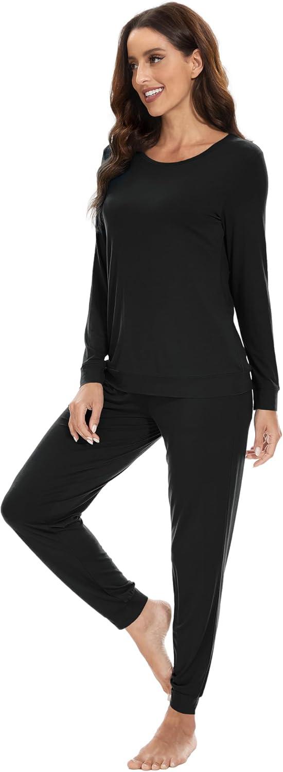WiWi Viscose from Bamboo Women's Pajama Set Soft Long Sleeve Pajamas Sets S-XXL(D-black)