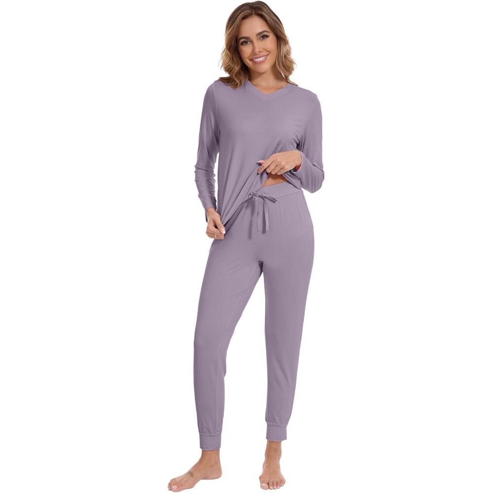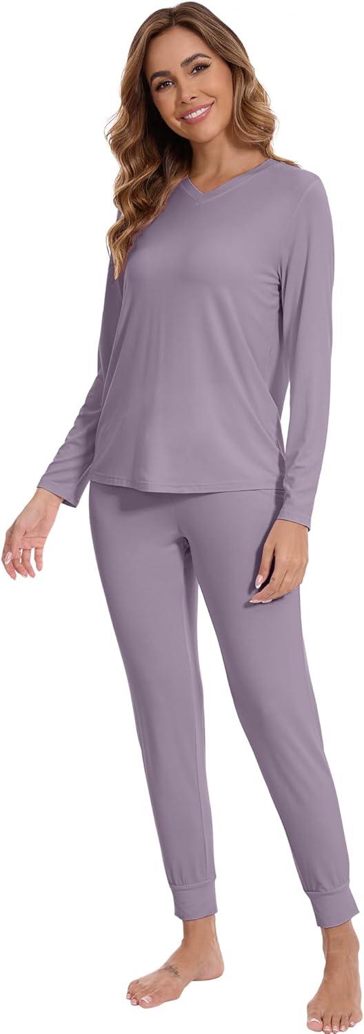 WiWi Viscose from Bamboo Women's Pajama Set Soft Long Sleeve Pajamas Sets S-XXL(E-violet)