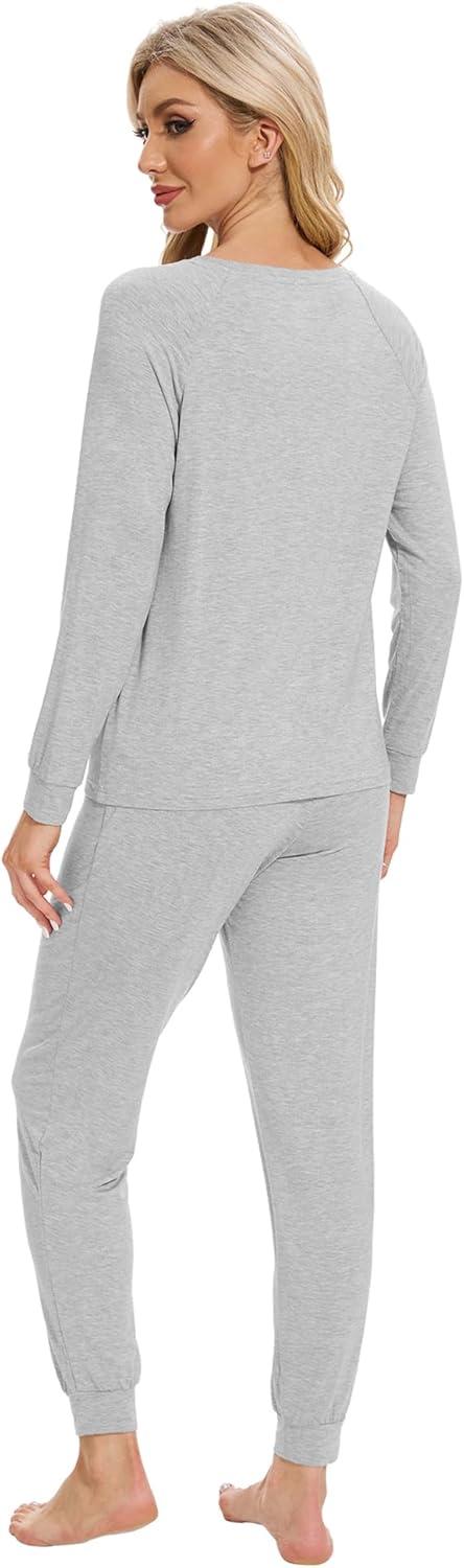 WiWi Viscose from Bamboo Women's Pajama Set Soft Long Sleeve Pajamas Sets S-XXL(F-light Heather Grey)