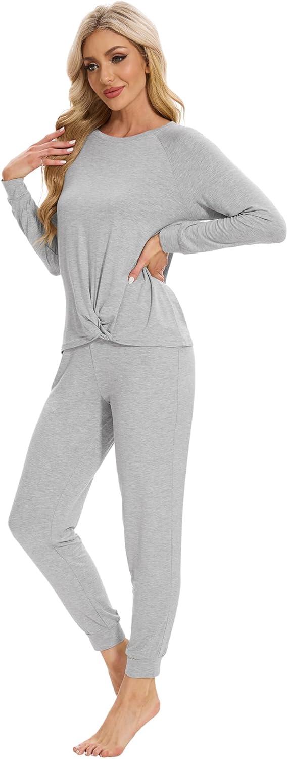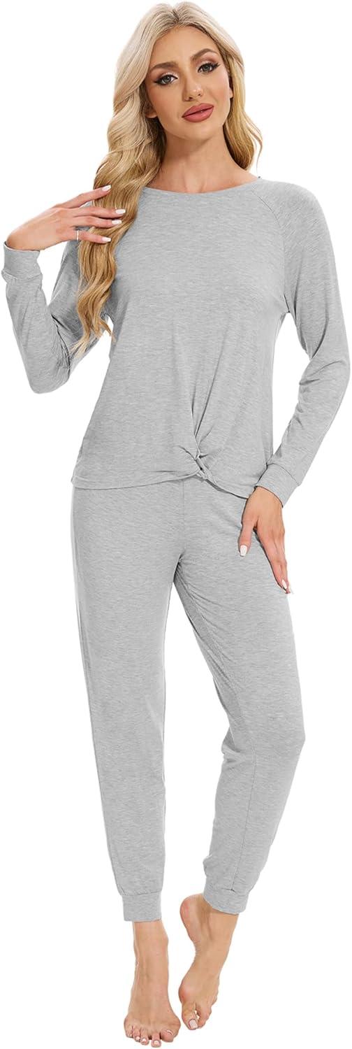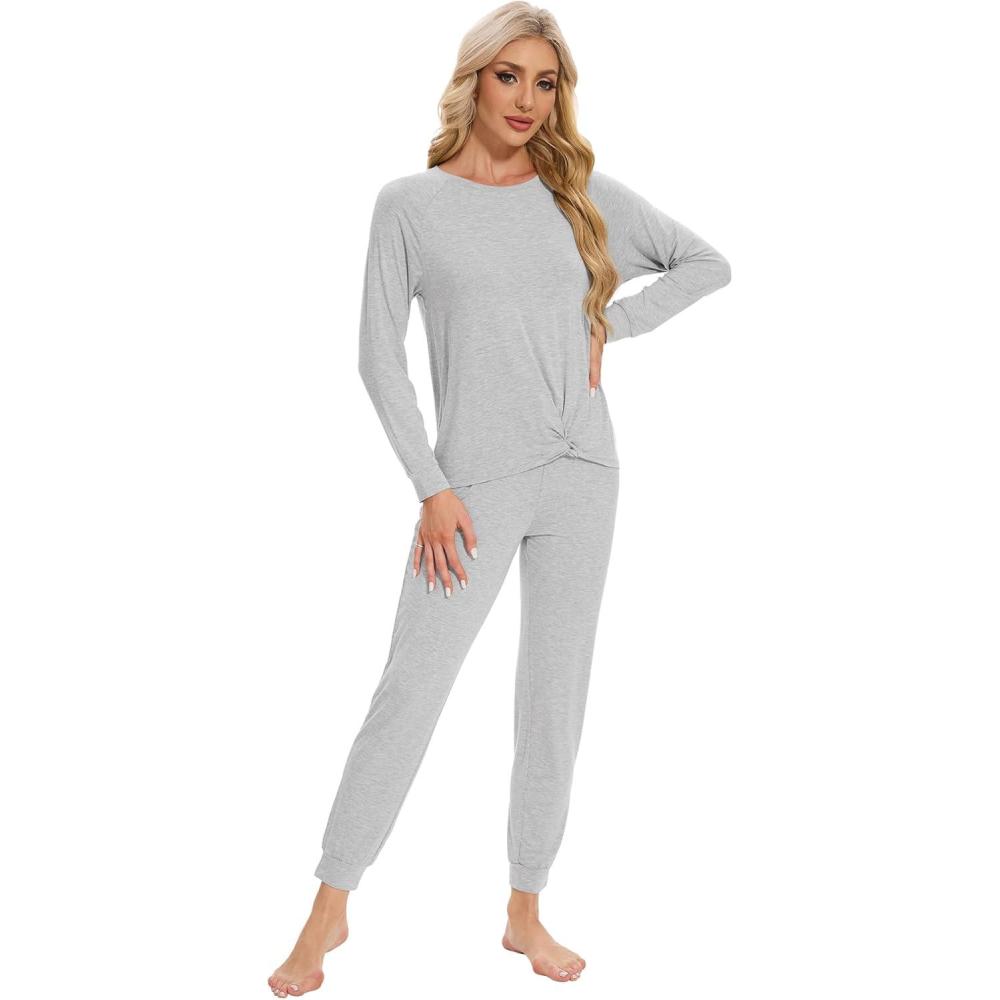 WiWi Viscose from Bamboo Women’s Pajama Set Soft Long Sleeve Pajamas Sets S-XXL(G-heather Grey)