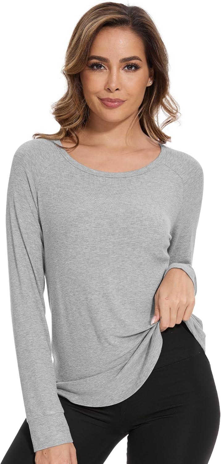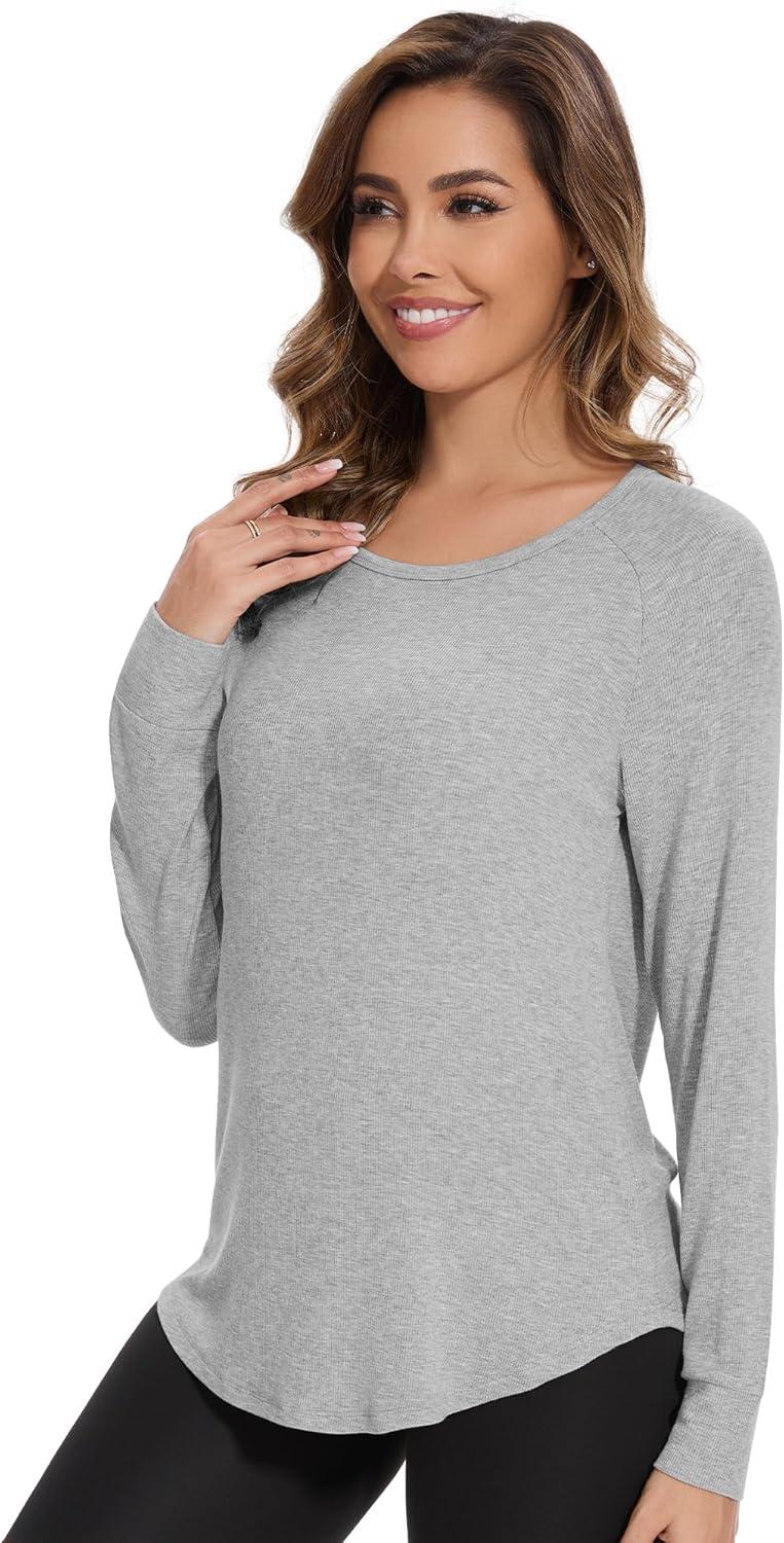 WiWi Womens Long Sleeve Tops Casual Viscose from Bamboo Loungewear Crew Neck Tunic Tops Soft Women Shirt S-XXL(A-heather Grey)