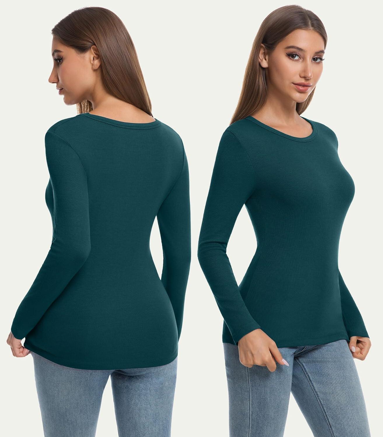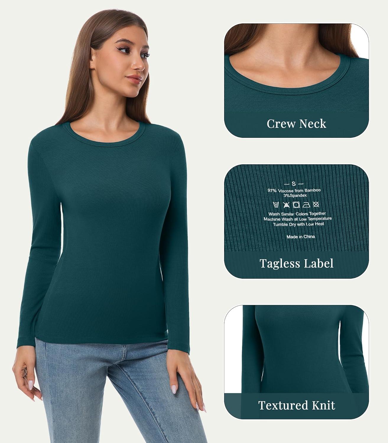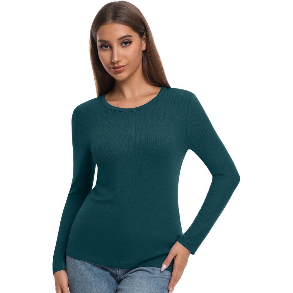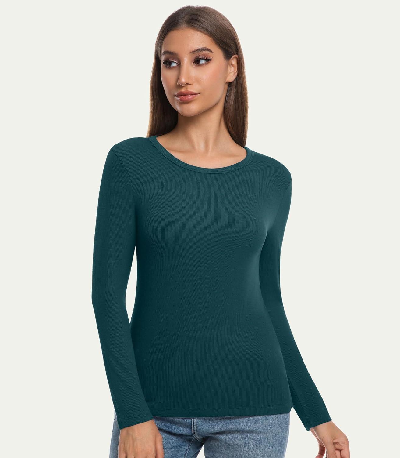 WiWi Womens Long Sleeve Tops Casual Viscose from Bamboo Loungewear Crew Neck Tunic Tops Soft Women Shirt S-XXL(B-deep Teal)
