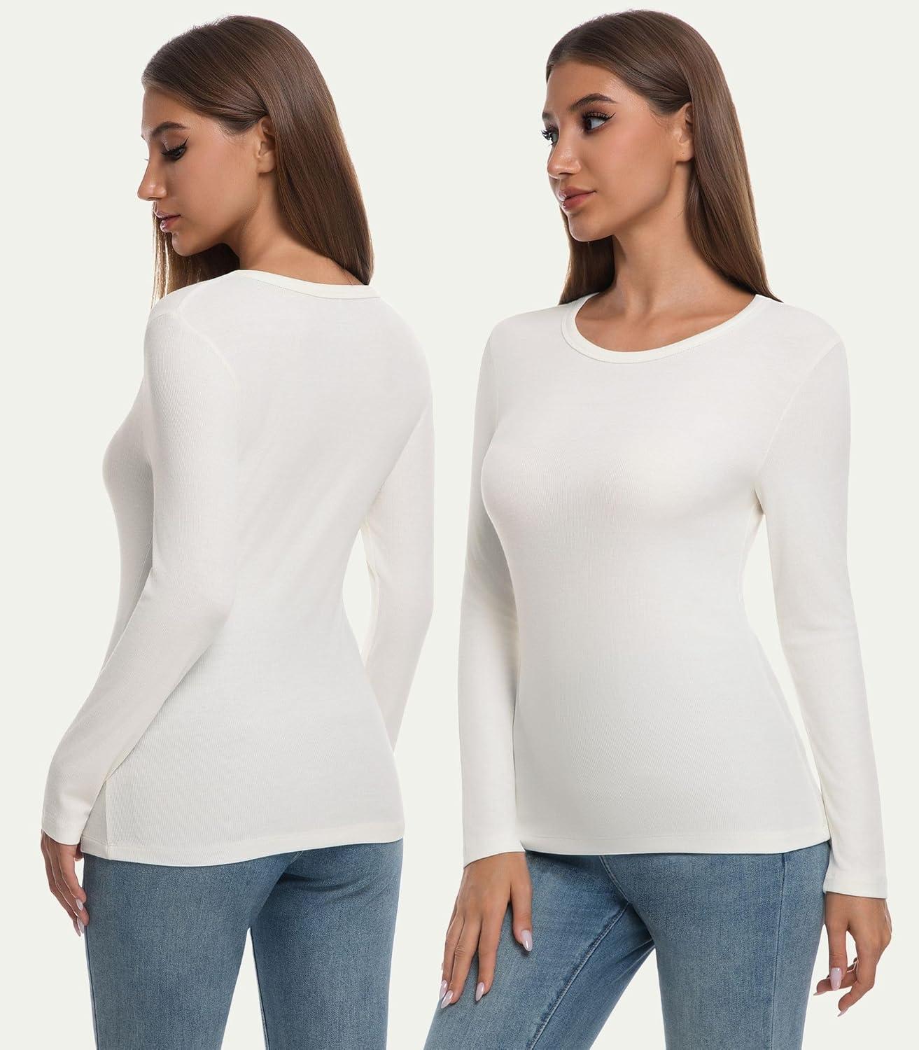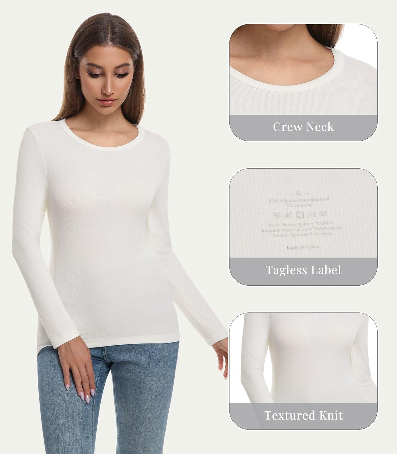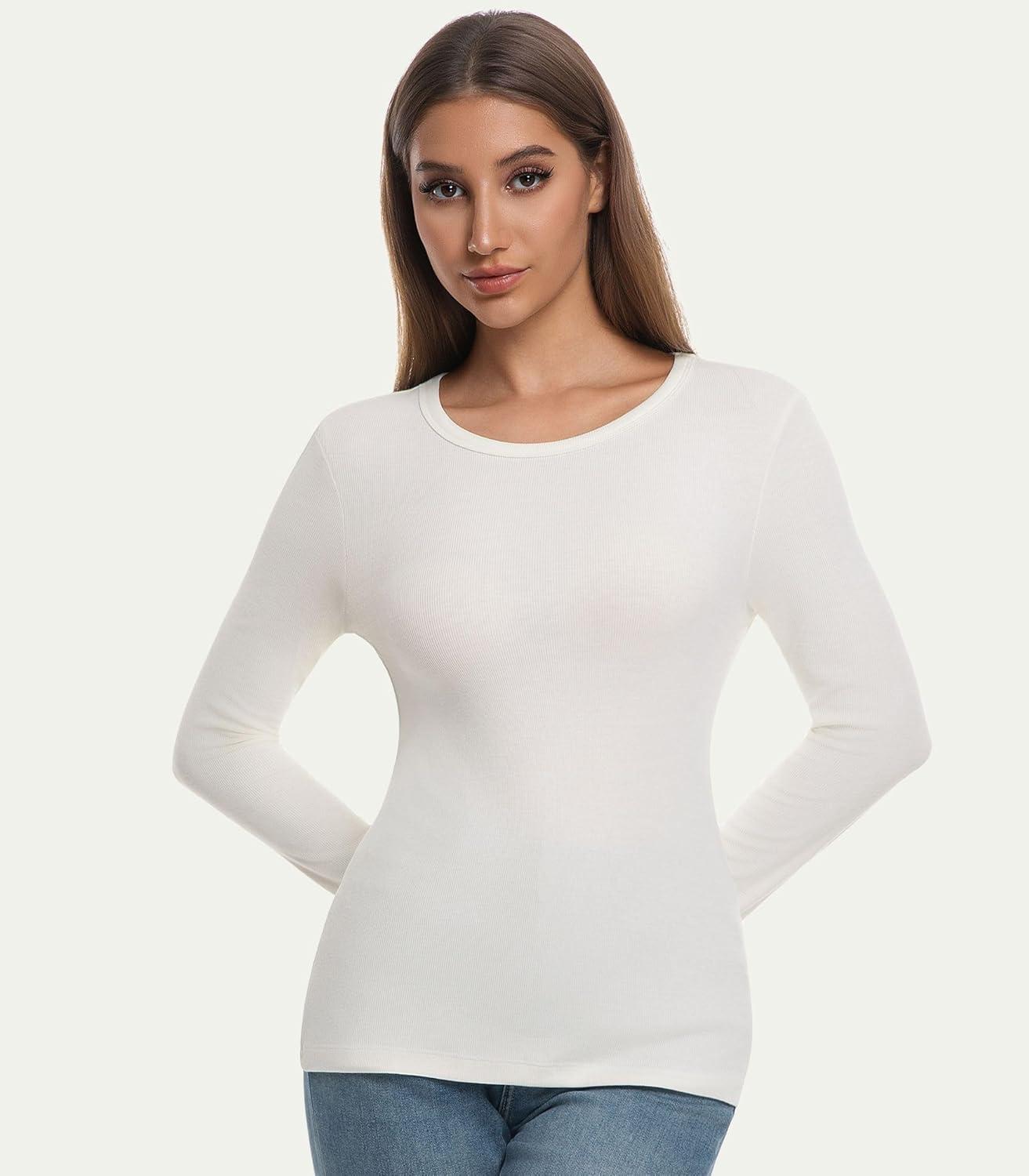WiWi Womens Long Sleeve Tops Casual Viscose from Bamboo Loungewear Crew Neck Tunic Tops Soft Women Shirt S-XXL(B-milky White)