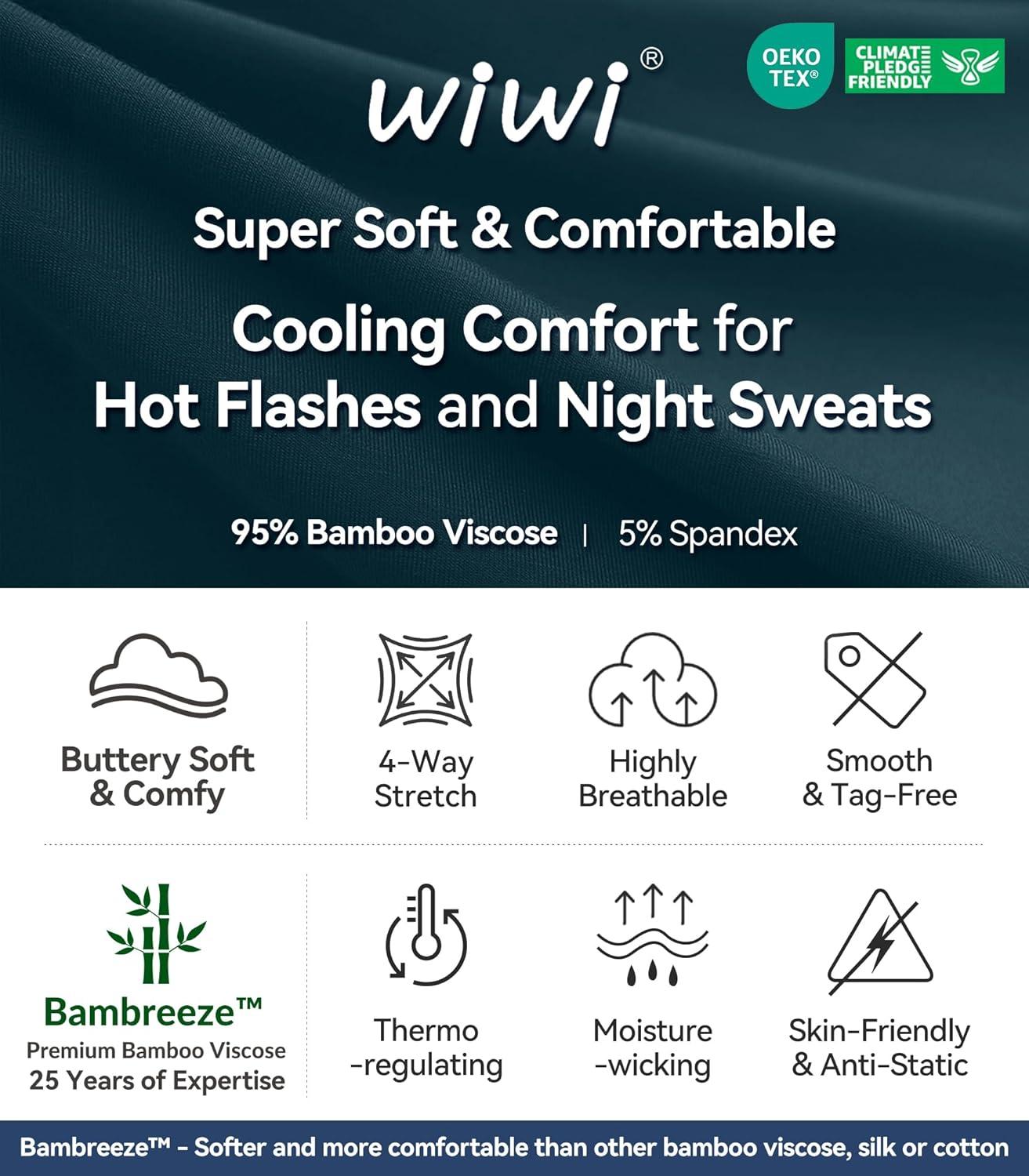 WiWi Women’s Pajama Sets Soft Long Sleeves Top with Pants PJ 2 Piece Viscose from Bamboo Loungewear Set S-XXL(A-deep Teal)
