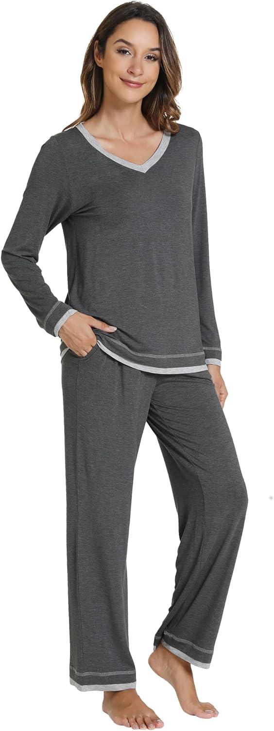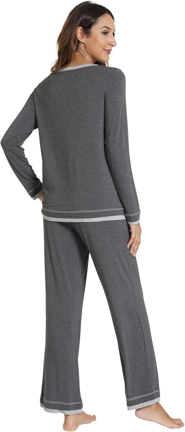 WiWi Women's Pajama Sets Soft Long Sleeves Top with Pants PJ 2 Piece Viscose from Bamboo Loungewear Set S-XXL(C-dark Heather Grey)