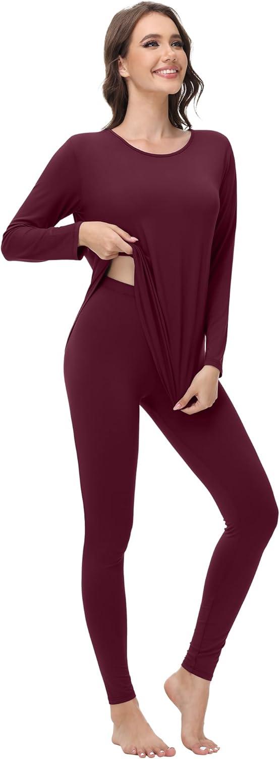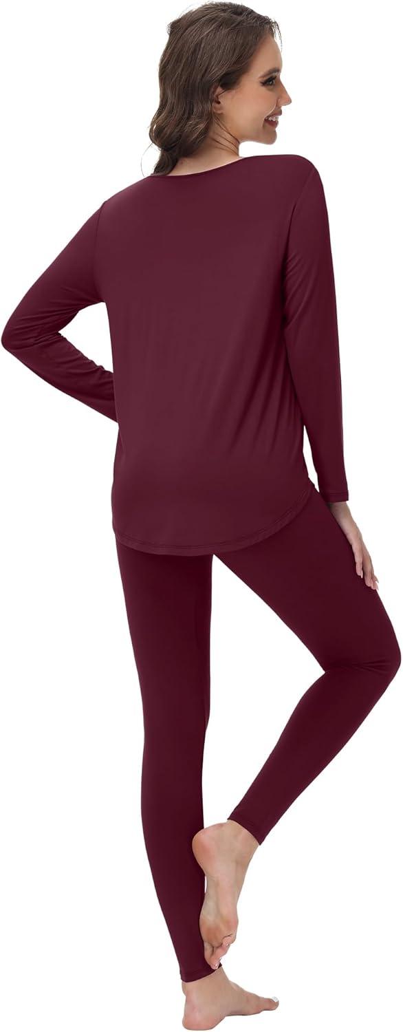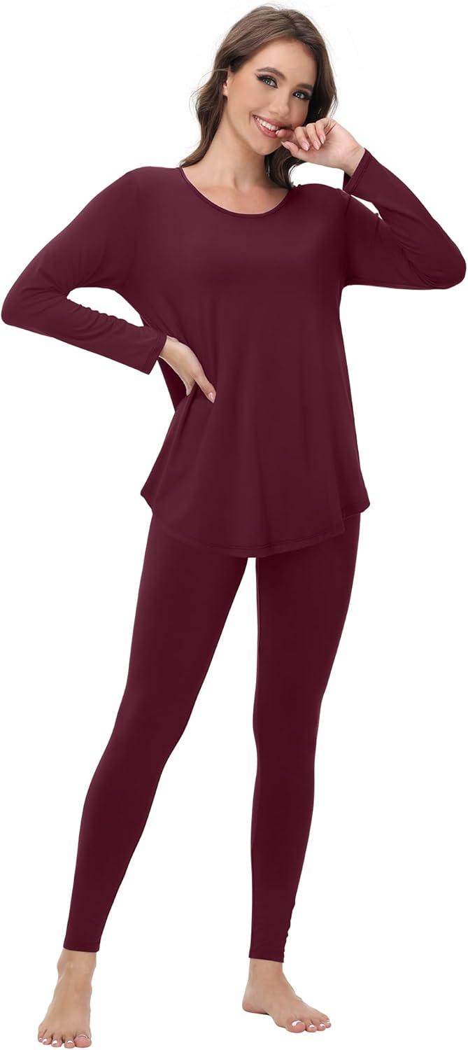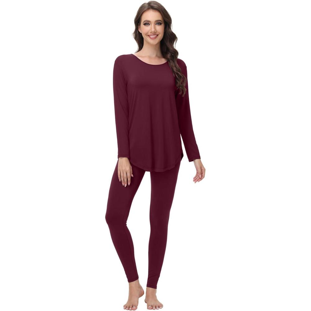 WiWi Women's Pajamas Leggings Lounge Set Viscose from Bamboo Sleepwear Long Sleeve Top and Pants Lightweight Pjs S-XXL(Brownish Red)