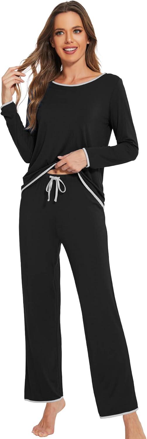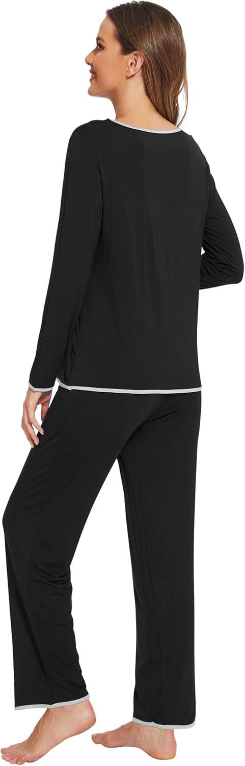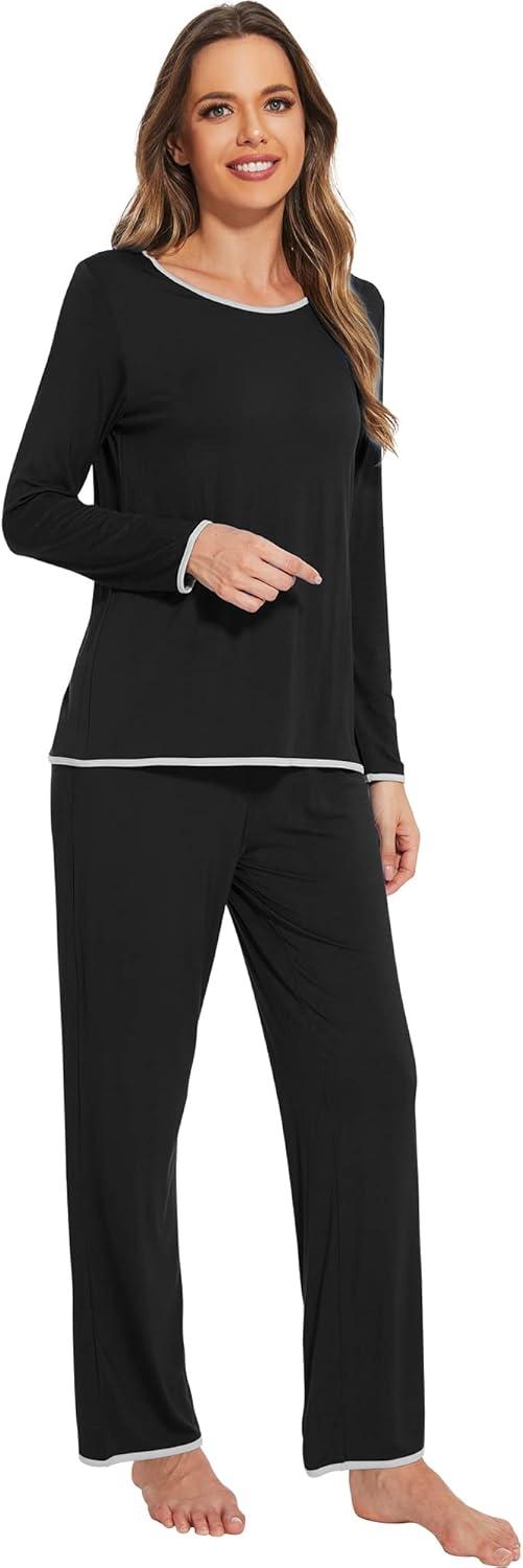 WiWi Women's Pajamas Set Soft Long Sleeve Tops and Pants Viscose from Bamboo Sleepwear Lightweight Pj Loungewear S-XXL(A-black)