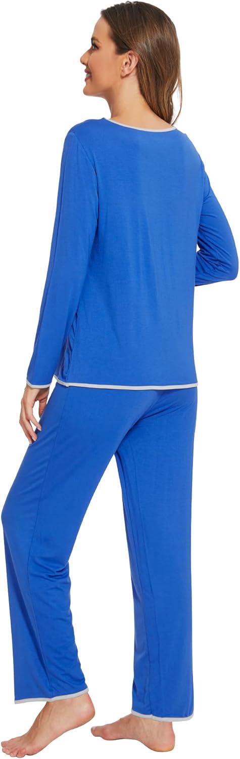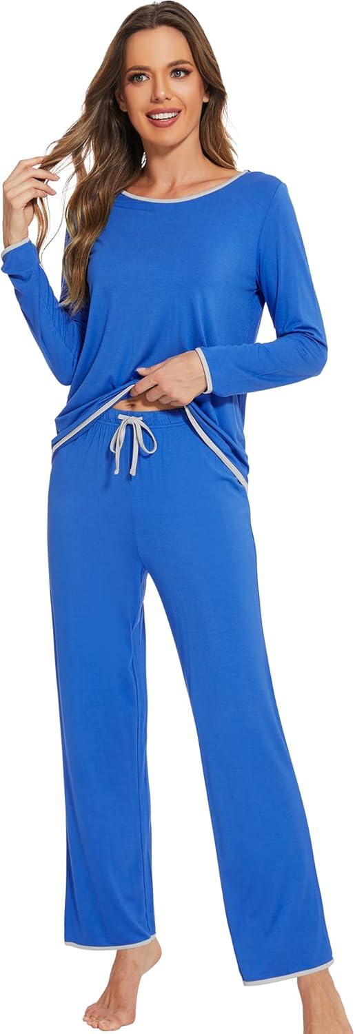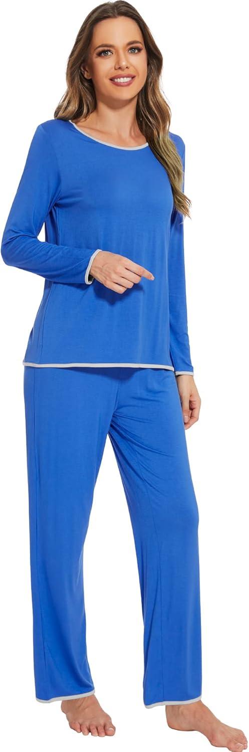 WiWi Women's Pajamas Set Soft Long Sleeve Tops and Pants Viscose from Bamboo Sleepwear Lightweight Pj Loungewear S-XXL(A-bright Blue)