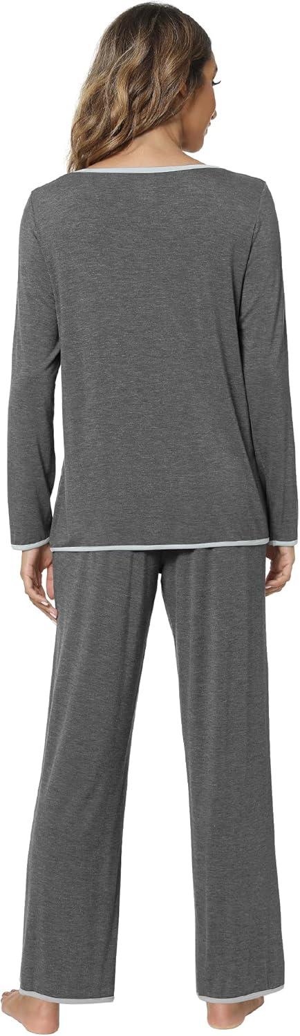 WiWi Women's Pajamas Set Soft Long Sleeve Tops and Pants Viscose from Bamboo Sleepwear Lightweight Pj Loungewear S-XXL(A- Heather Grey)