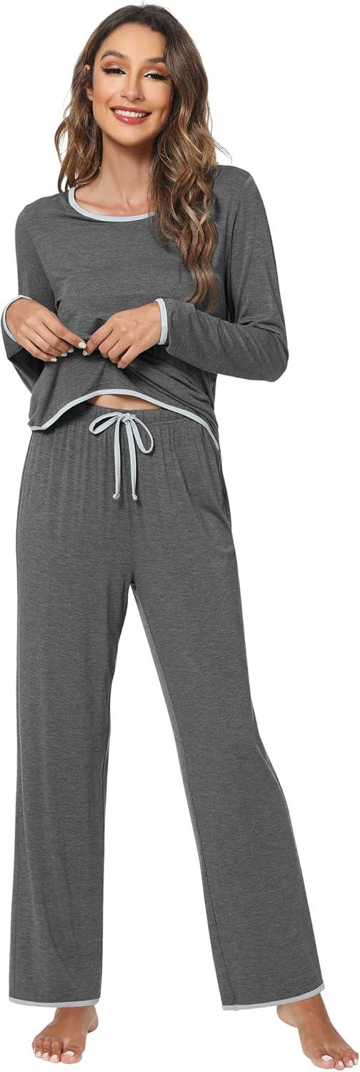 WiWi Women’s Pajamas Set Soft Long Sleeve Tops and Pants Viscose from Bamboo Sleepwear Lightweight Pj Loungewear S-XXL(A- Heather Grey)