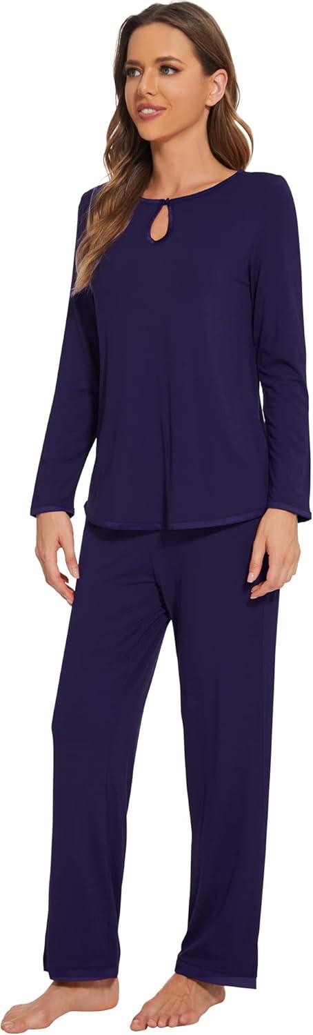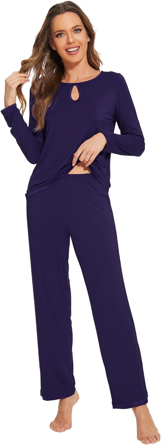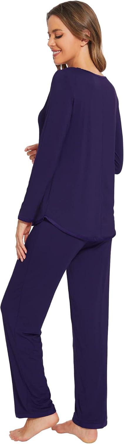 WiWi Women’s Pajamas Set Soft Long Sleeve Tops and Pants Viscose from Bamboo Sleepwear Lightweight Pj Loungewear S-XXL(B-violet)