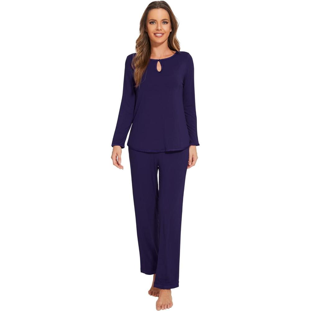 WiWi Women's Pajamas Set Soft Long Sleeve Tops and Pants Viscose from Bamboo Sleepwear Lightweight Pj Loungewear S-XXL(C-navy)